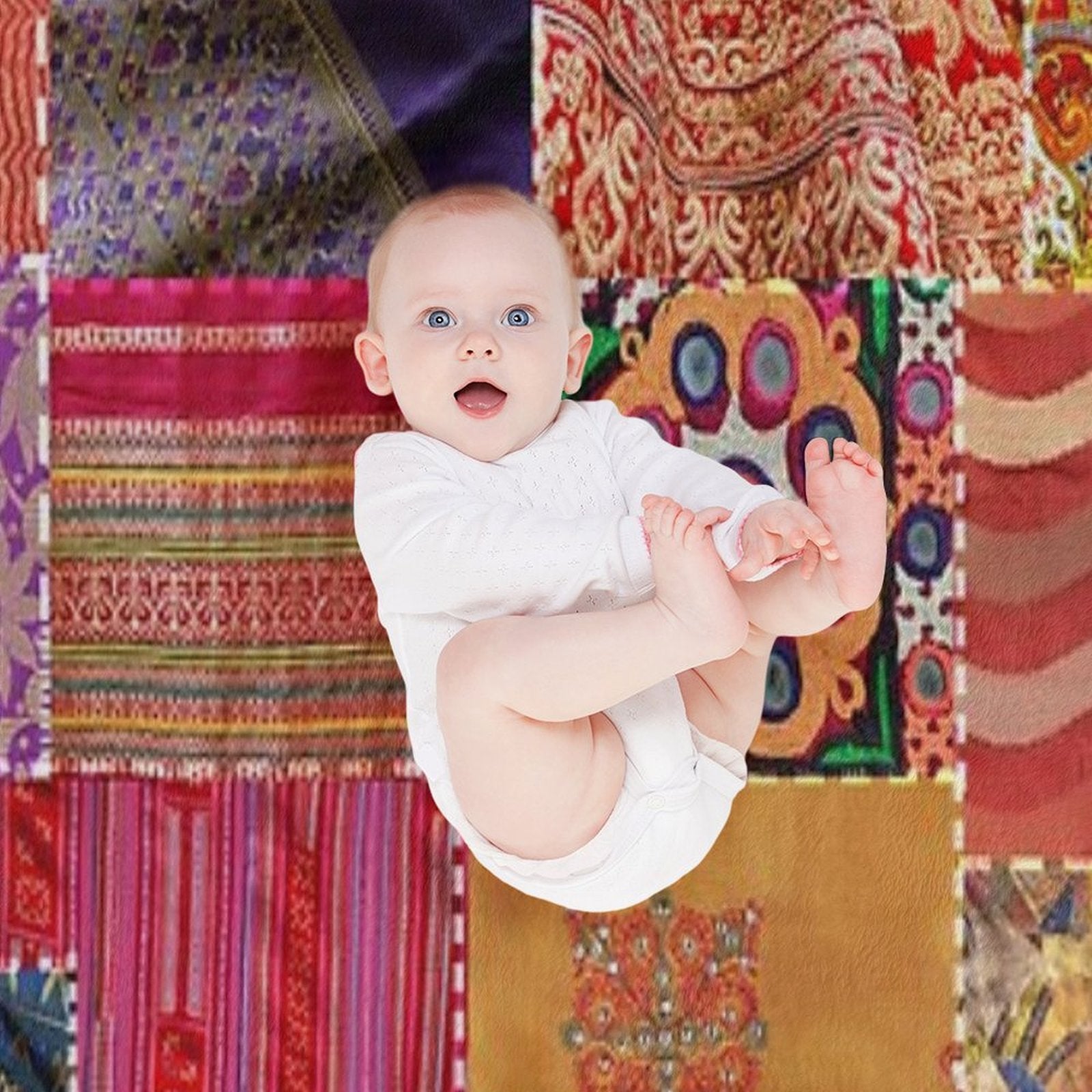- Transform it into a bath towel, picnic blanket, yoga mat companion, or chic Boho Art Sari Patchwork Quilt-inspired wall hanging.
