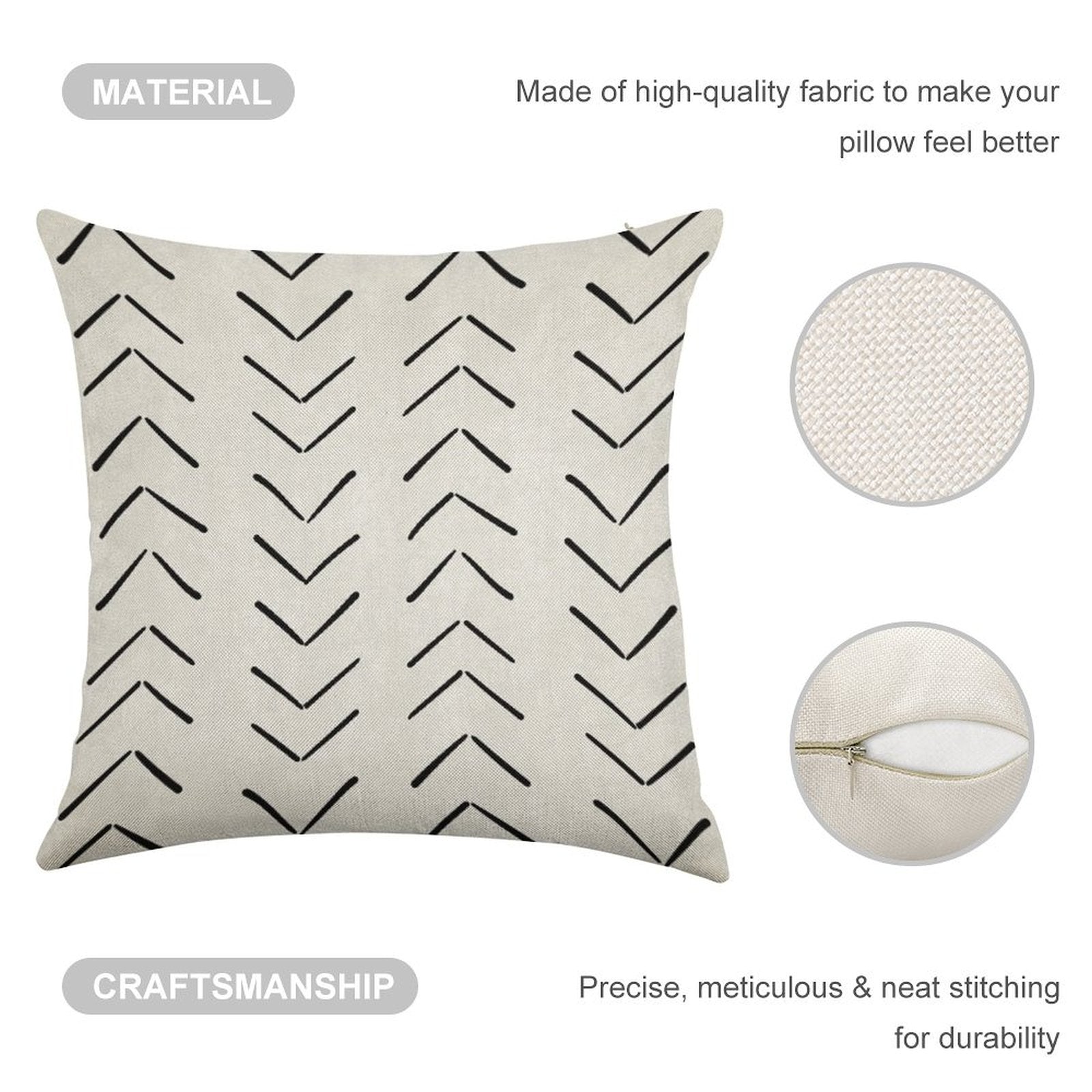 - Double-Stitched Edges: Precision stitching prevents fraying, stretching, and pilling, ensuring your Boho Big Arrows in White And Black Linen Throw Pillow Cover stays pristine through countless uses.