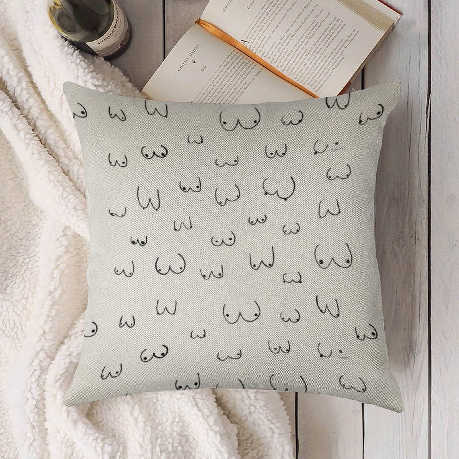 Boobie Boob Print! Linen Throw Pillow Cover