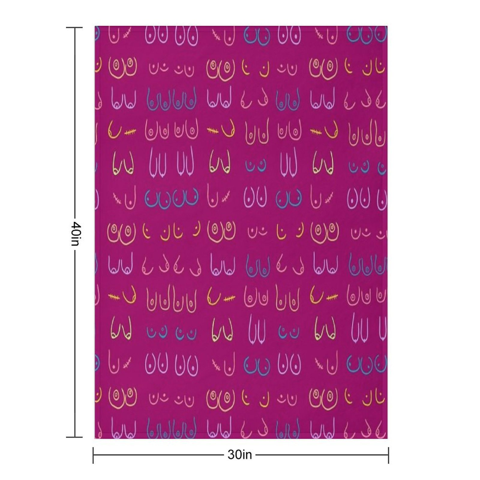 BOOBIES PASTEL PATTERN PINK Blanket Size Chart: