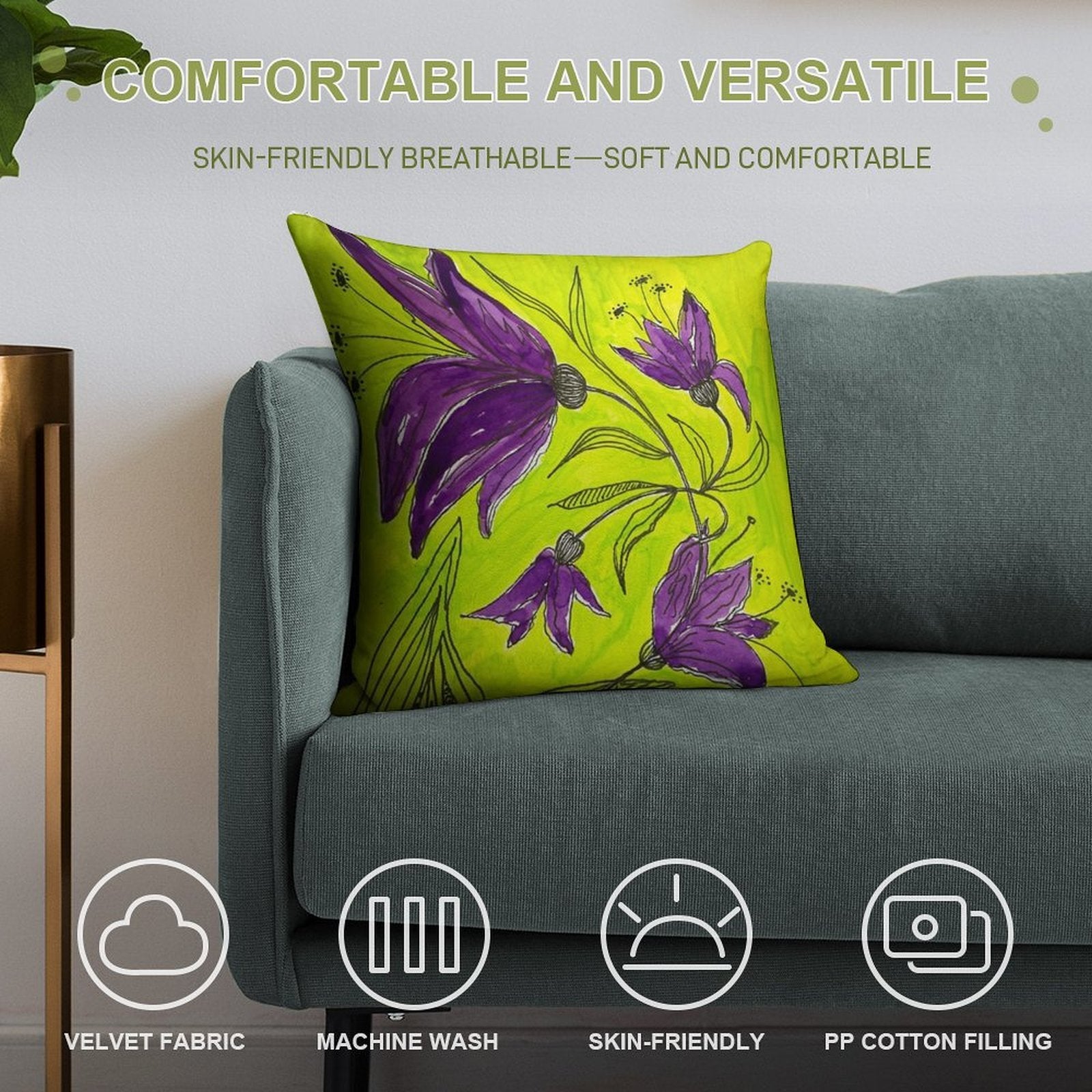 Botanical Lime Green And Purple Soft Easy Maintenance Throw Pillow