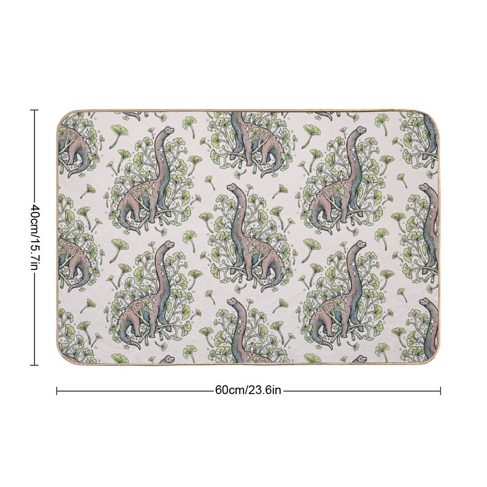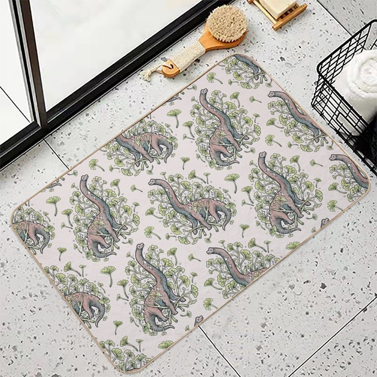 Brachio Ginkgo Calm Color Palette Dinosaur Botanical Art Easy Maintenance Bath Mat
