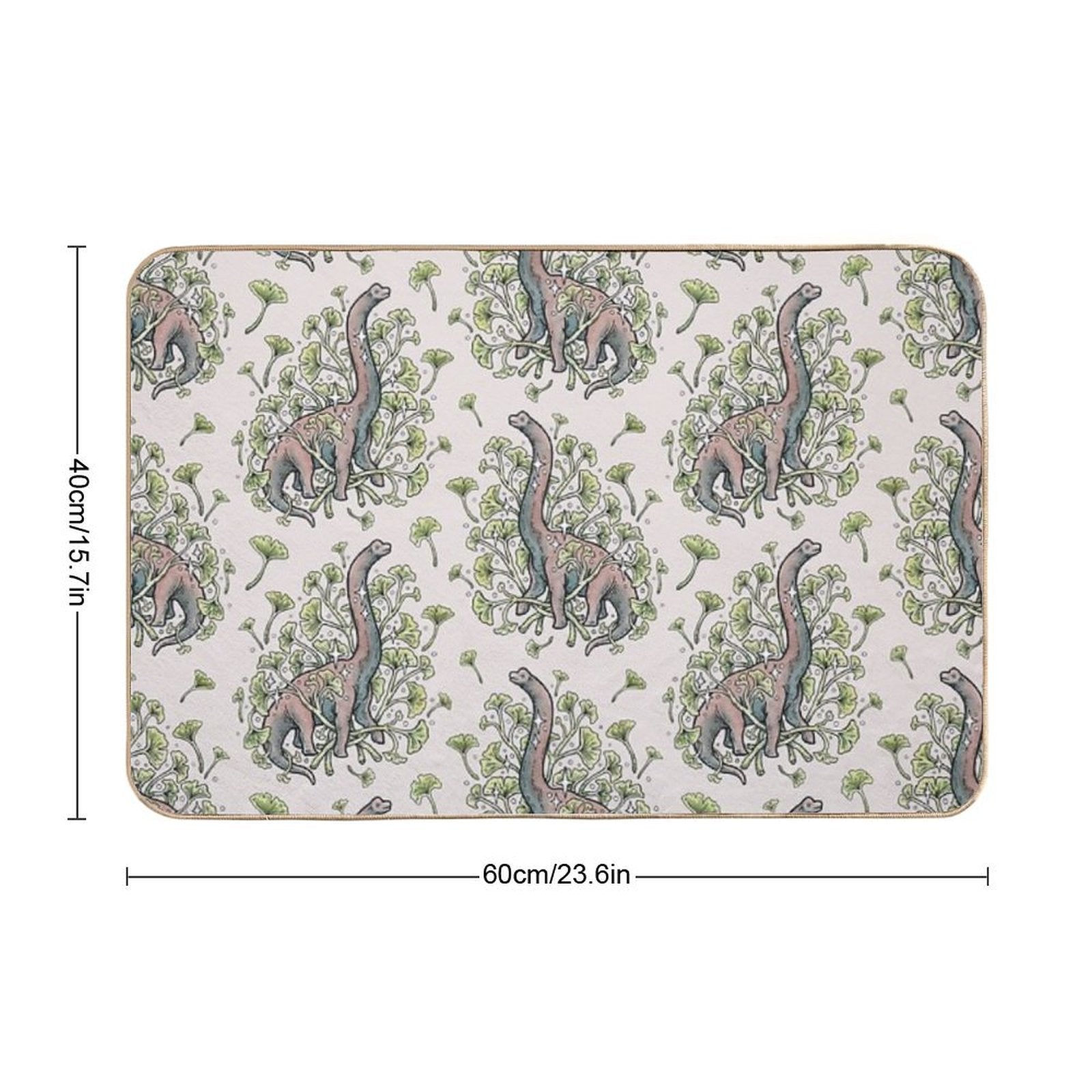- Use as a vanity rug, guest suite accent, or mudroom defender – the Brachio Ginkgo Calm Color Palette Dinosaur Botanical Art Mat adapts to any space.
