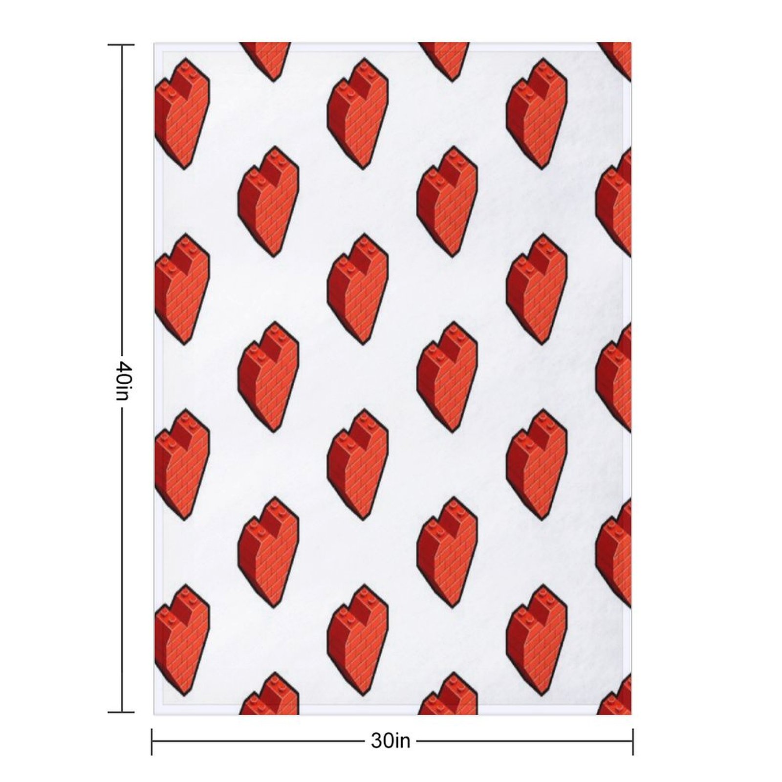 Brick Heart – Bold Toy Block Style Love Design Blanket Size Chart: