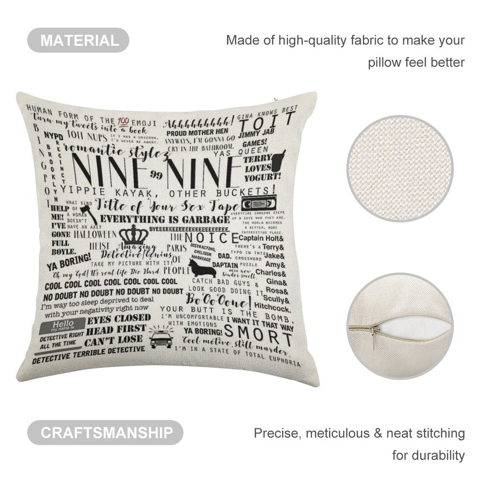 - Machine or hand washable (max 45°C). Avoid bleach and prolonged soaking to preserve the vibrant texture of your Brooklyn Nine Nine Memorable Quotes Luxury Pillow Cover.