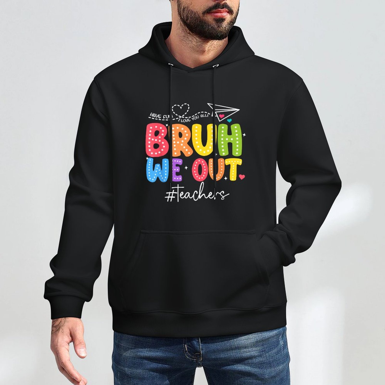 Bruh We Out Teachers Cute End Of School Year Groovy Summer Casual Wear Hoodie