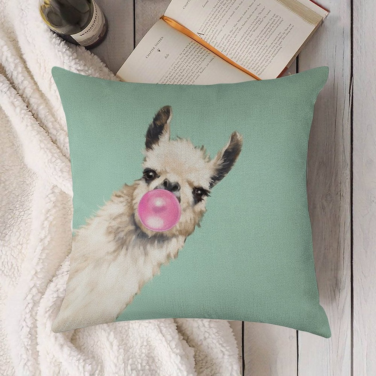 Upgrade your living space with our Bubble Gum Sneaky Llama in Green Linen Throw Pillow Cover, blending timeless elegance and modern functionality. Crafted from breathable, durable linen-cotton fabric, this Bubble Gum Sneaky Llama in Green Customizable Home Decor Gift features reinforced edges and a hidden zipper for a flawless finish. Perfect for bedrooms, RVs, or vacation homes, our Bubble Gum Sneaky Llama in Green Luxury Pillow Cover offers versatility and style, making it ideal for everyday use or heartfelt gifting.