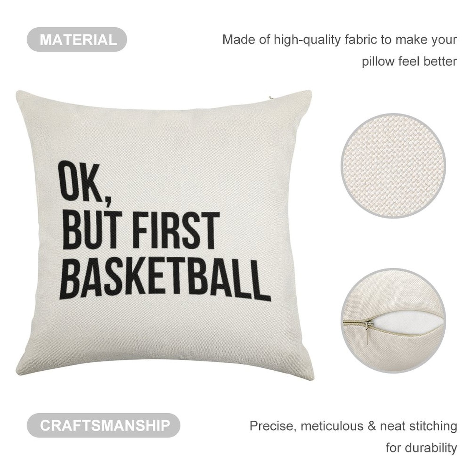 - Double-Stitched Edges: Precision stitching prevents fraying, stretching, and pilling, ensuring your BUT FIRST BASKETBALL Linen Throw Pillow Cover stays pristine through countless uses.
