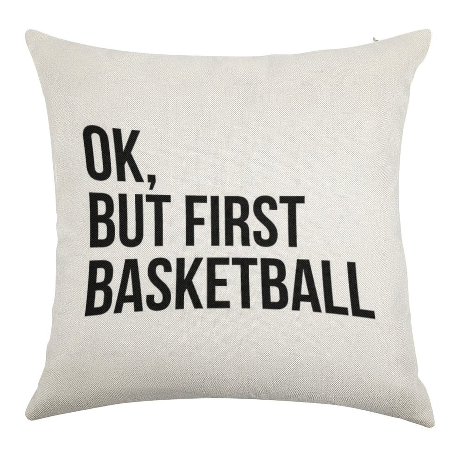 BUT FIRST BASKETBALL Linen Throw Pillow Cover