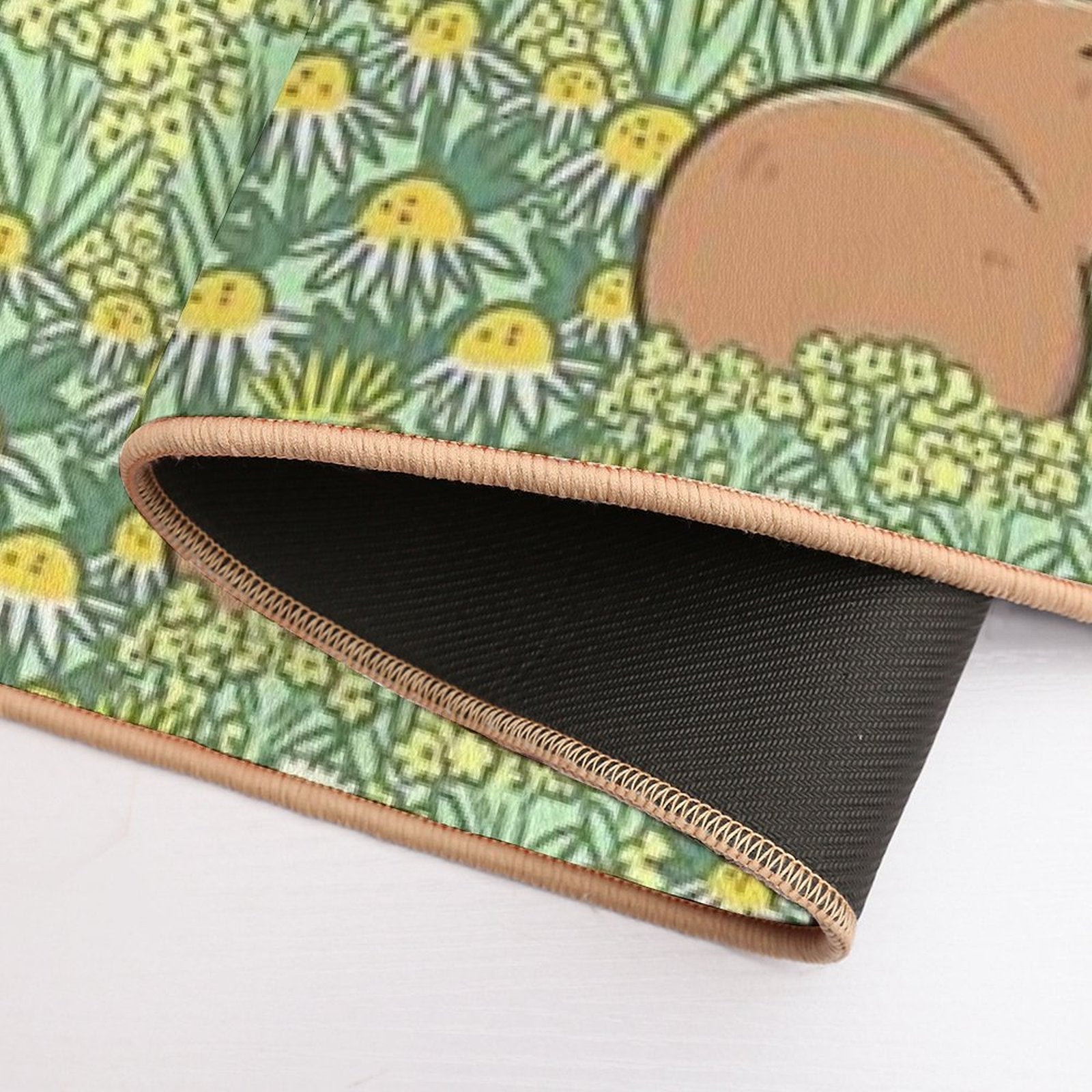 - Non-slip rubber backing grips floors securely, ideal for Capybaras Meadow in Green And Yellow Mat placements on tiles, wood, or marble.