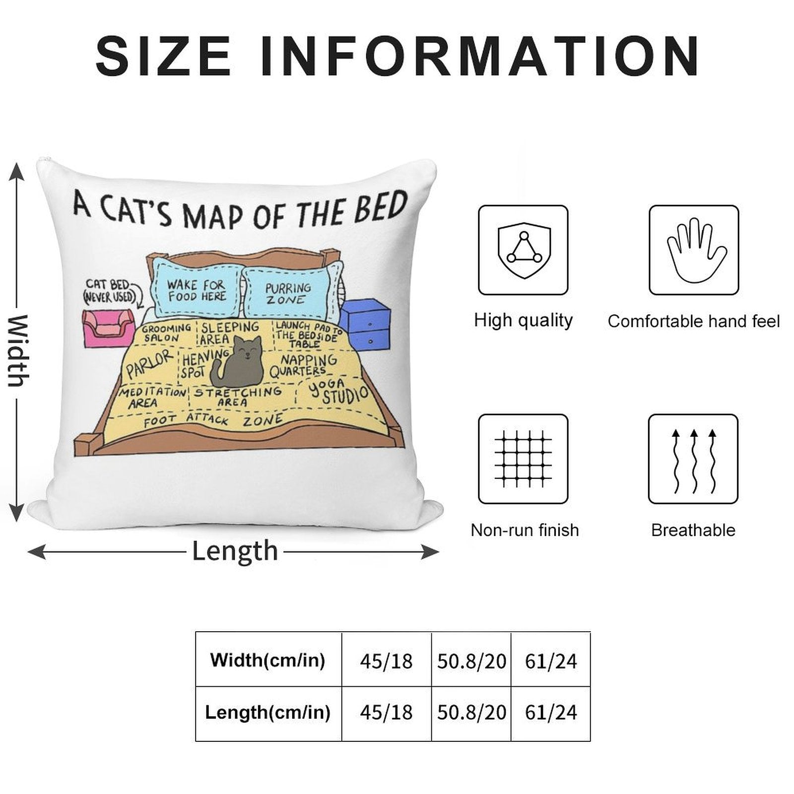 - Reinforced stitching along the edges prevents fraying and extends the life of your Cats Map of The Bed Funny Cat Gift for Cat Owner Pillowcase.