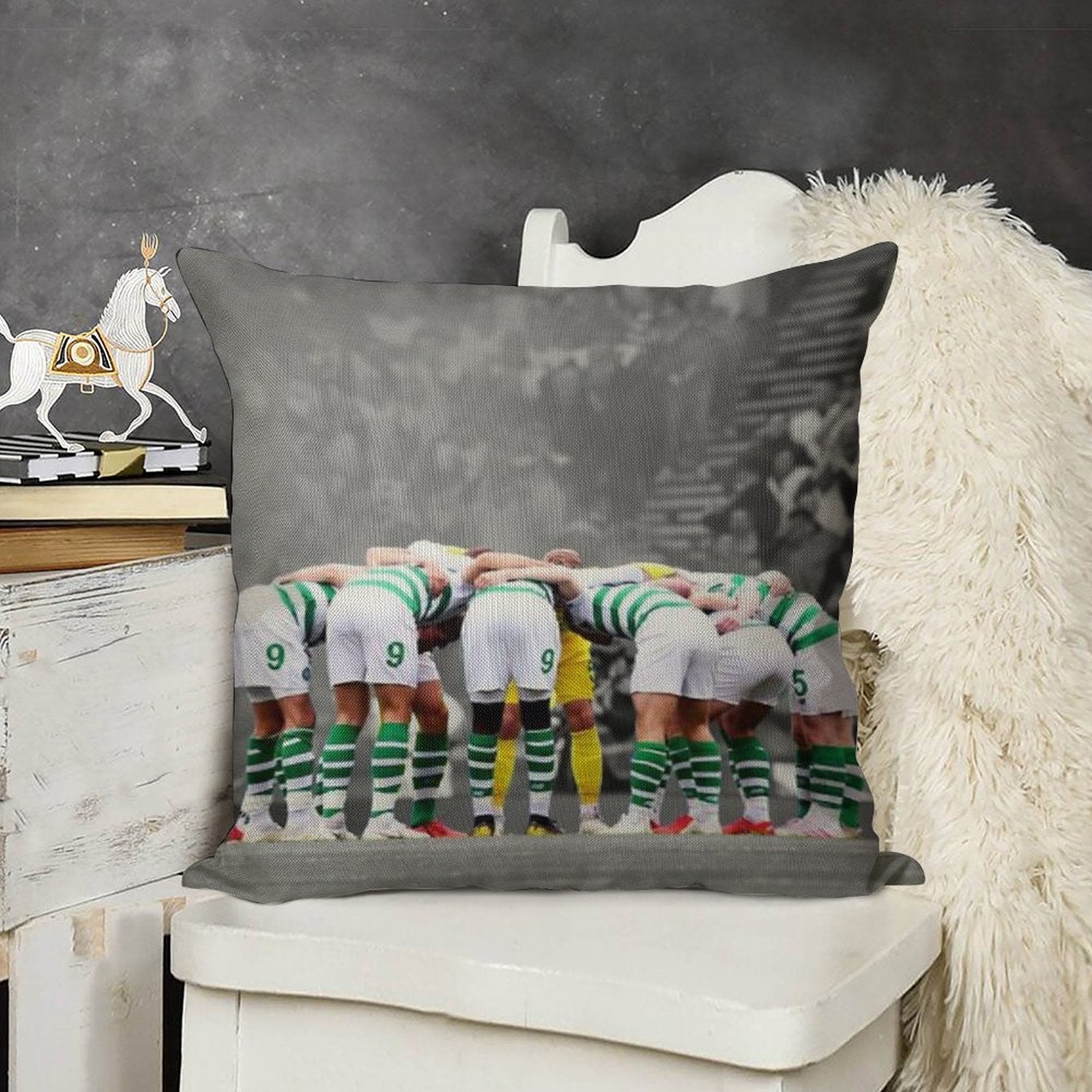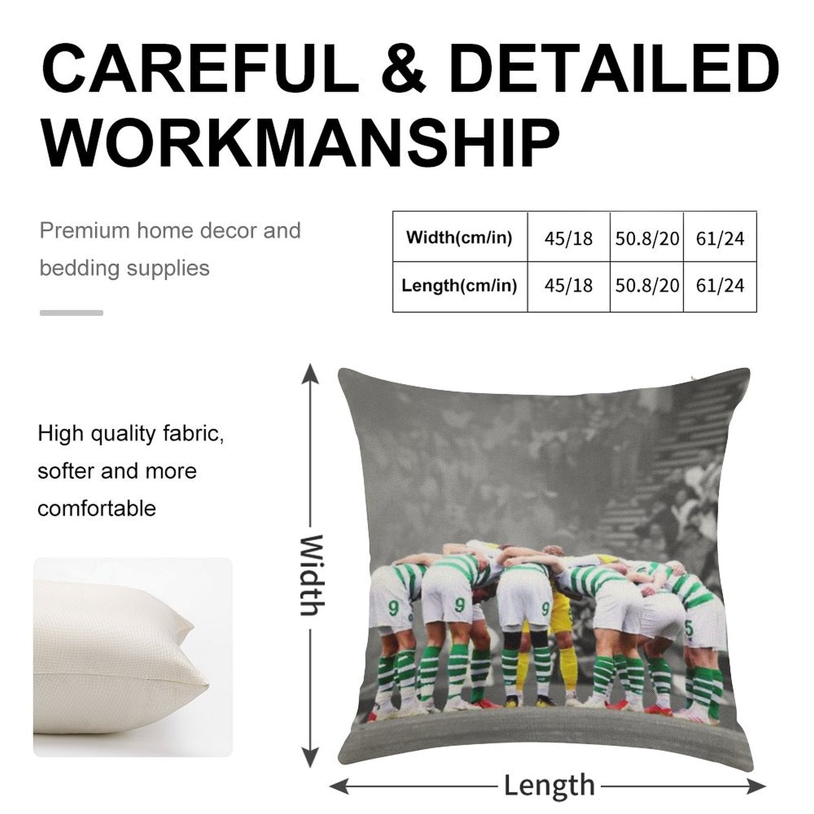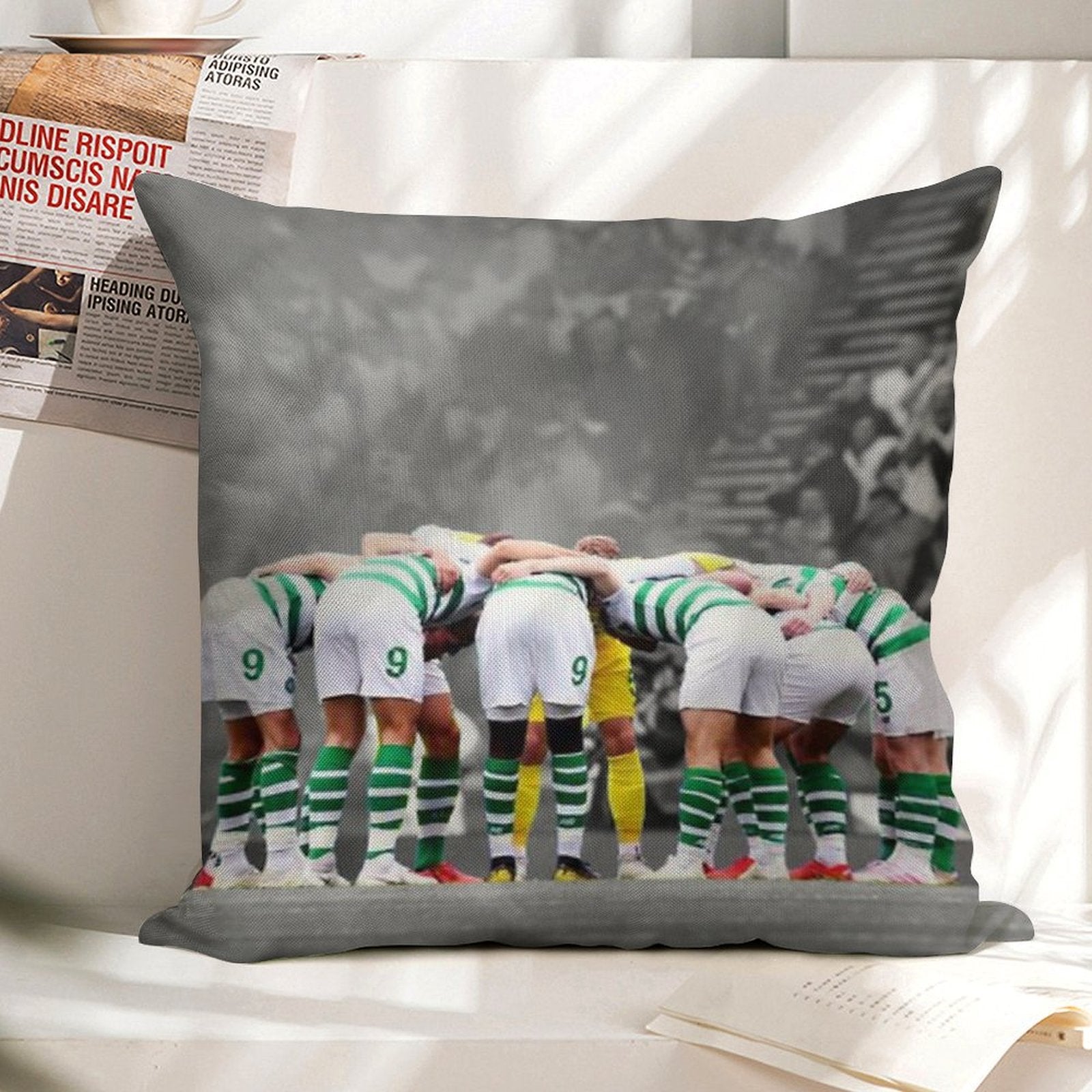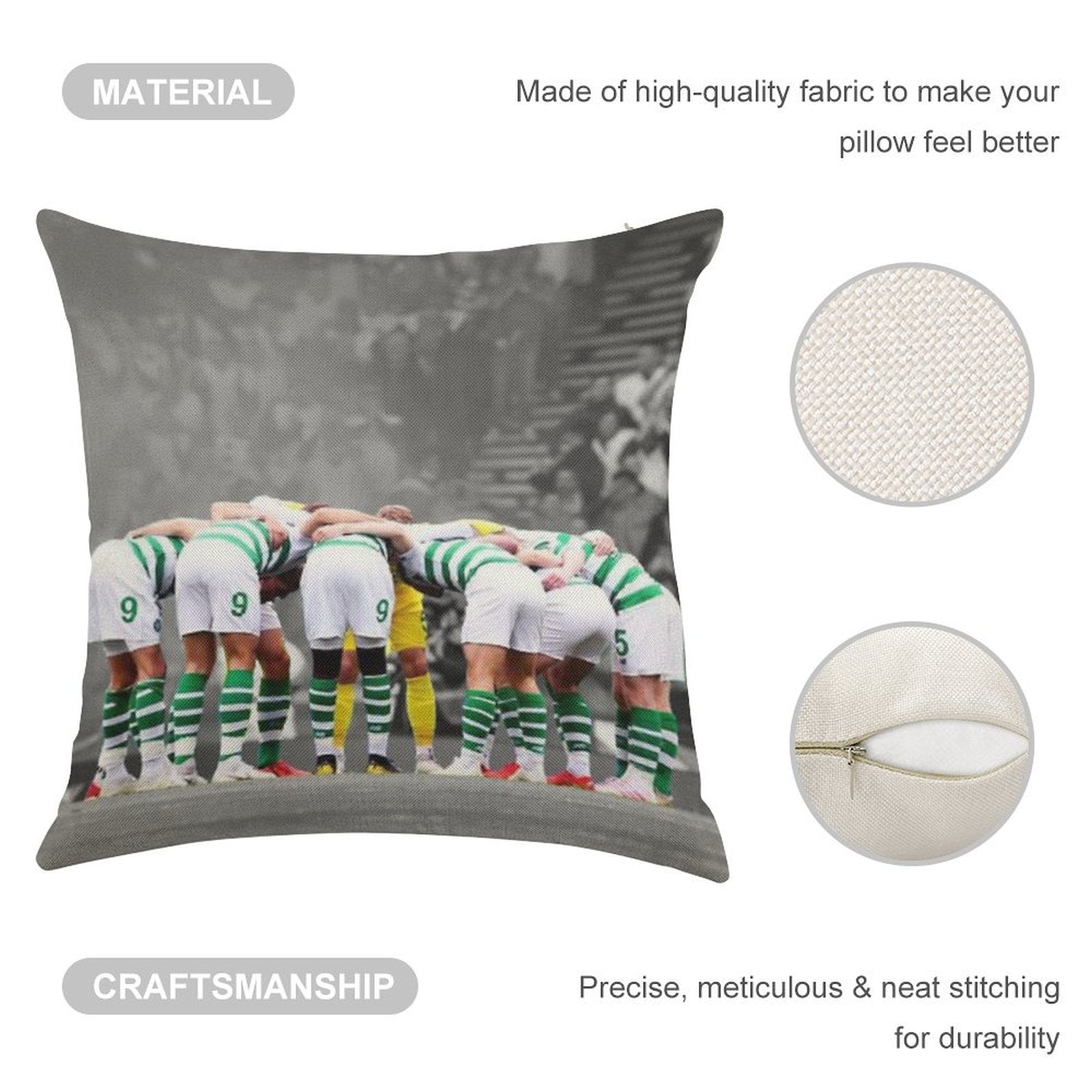 - Machine or hand washable (max 45°C). Avoid bleach and prolonged soaking to preserve the vibrant texture of your Celtic Fc Huddle Luxury Pillow Cover.