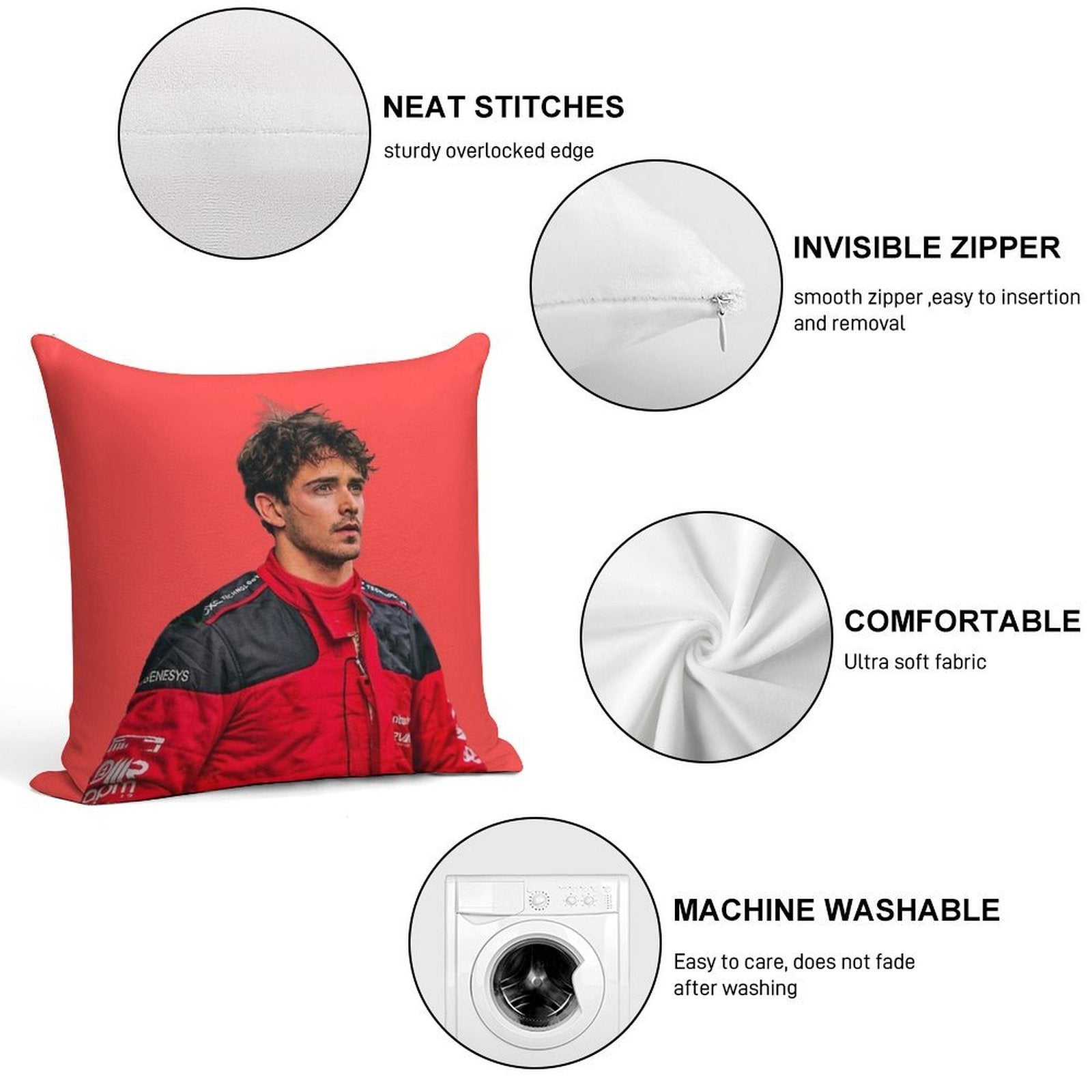 Charles Leclerc F1 Driver Scuderia Ferrari F1 Sweaty Soft Shrink-Resistant Throw Pillow