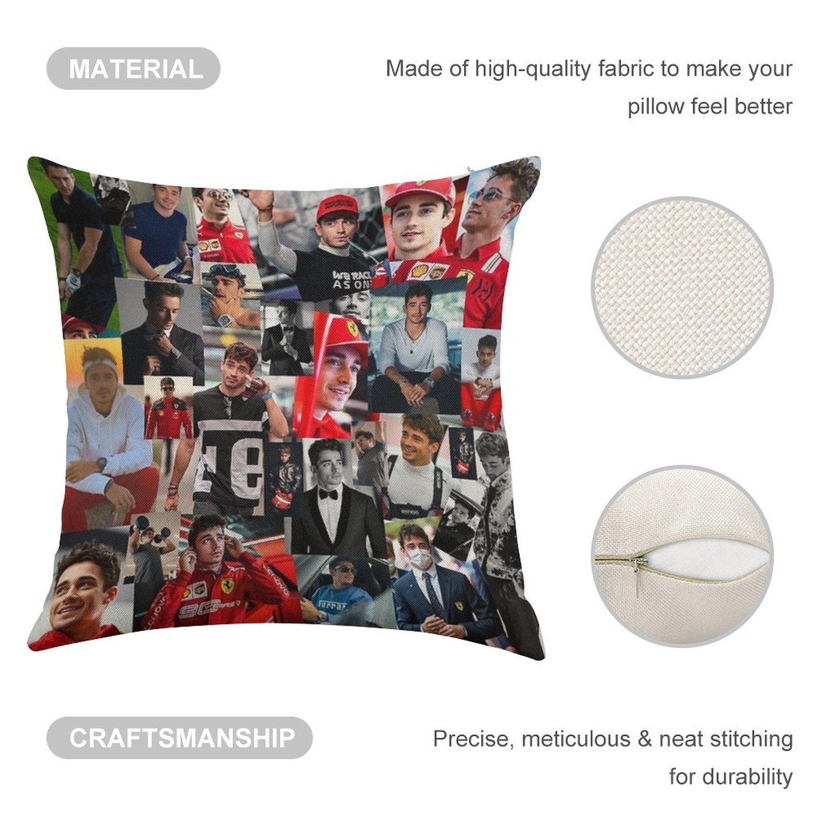 - Double-Stitched Edges: Precision stitching prevents fraying, stretching, and pilling, ensuring your Charles Leclerc Monacan Motorsports Racing Driver Collage Linen Throw Pillow Cover stays pristine through countless uses.