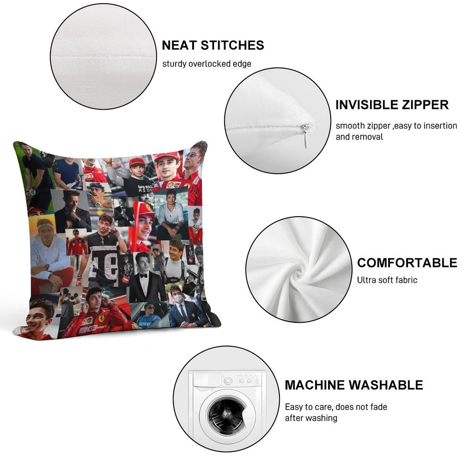 - Reinforced stitching along the edges prevents fraying and extends the life of your Charles Leclerc Monacan Motorsports Racing Driver Collage Pillowcase.