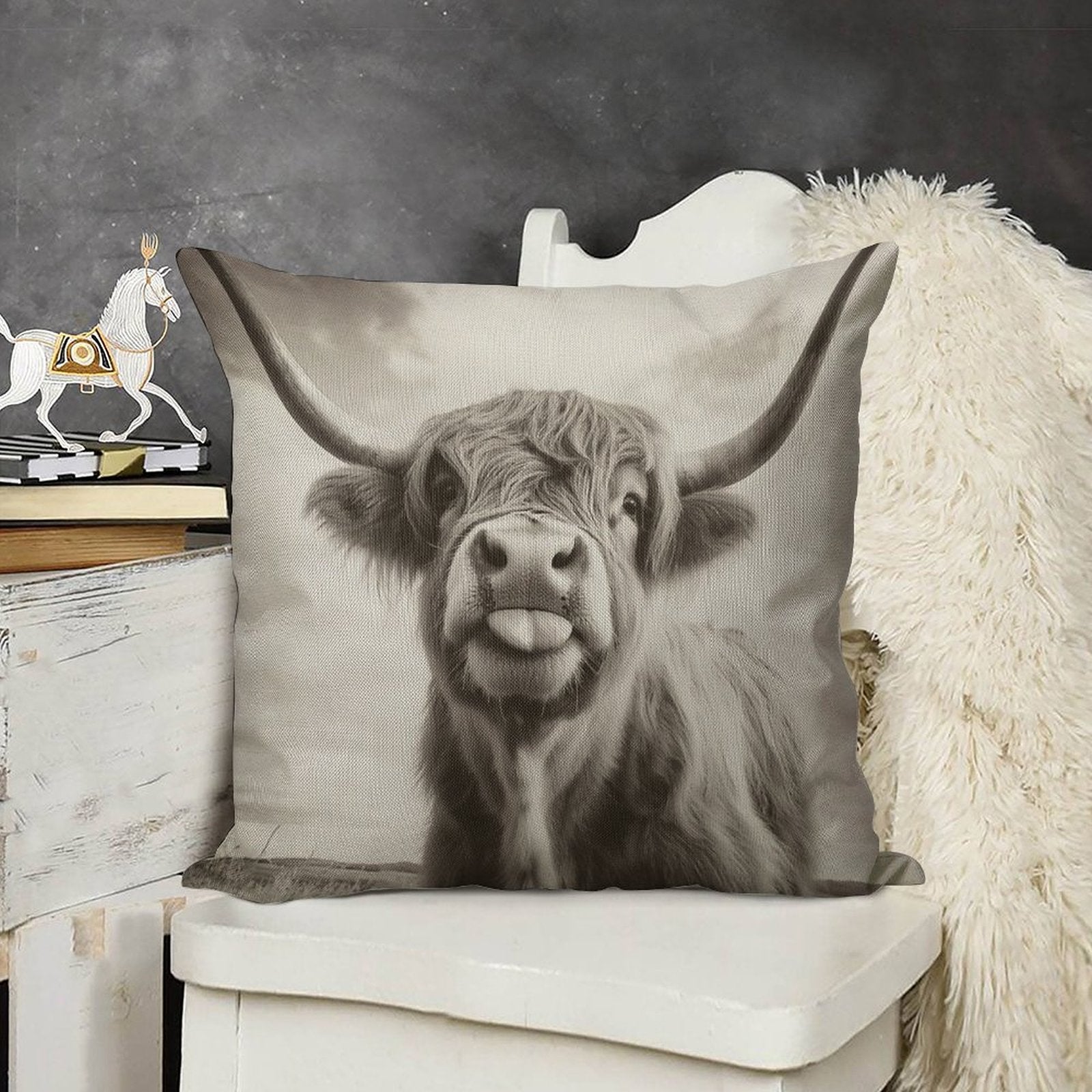 - Machine or hand washable (max 45°C). Avoid bleach and prolonged soaking to preserve the vibrant texture of your Cheeky Highland Cow Luxury Pillow Cover.