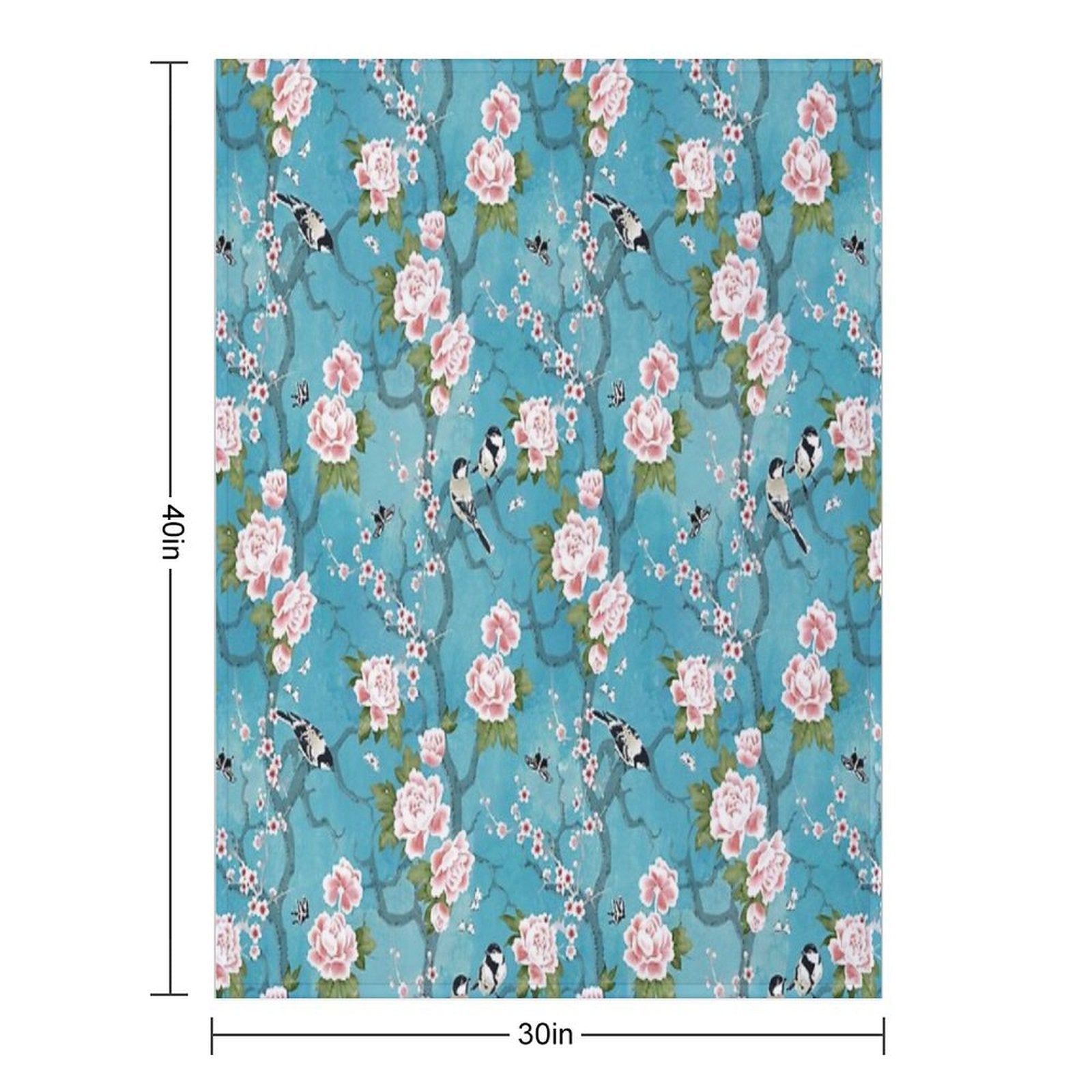 Chinoiserie Birds in Turquoise Blue Blanket Size Chart: