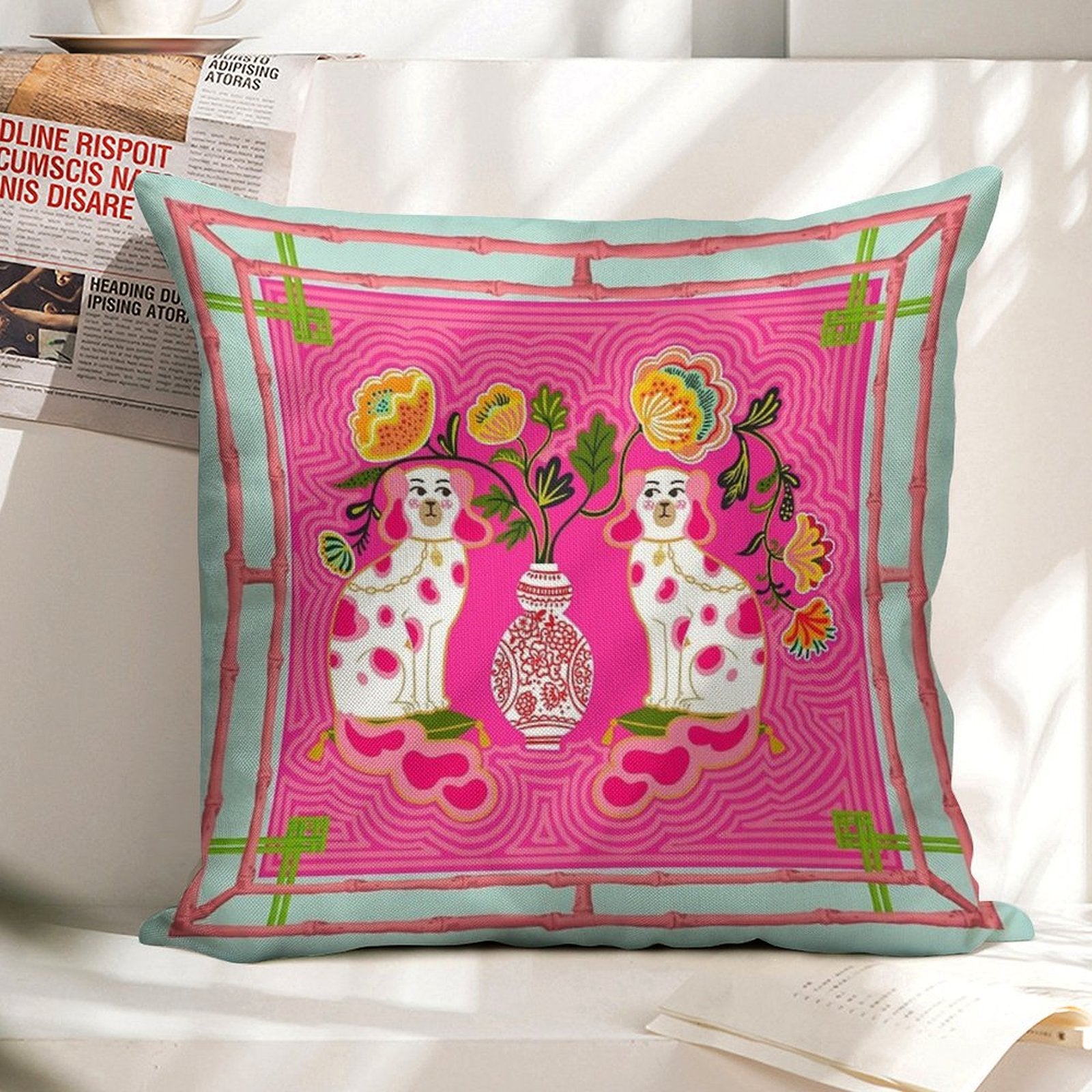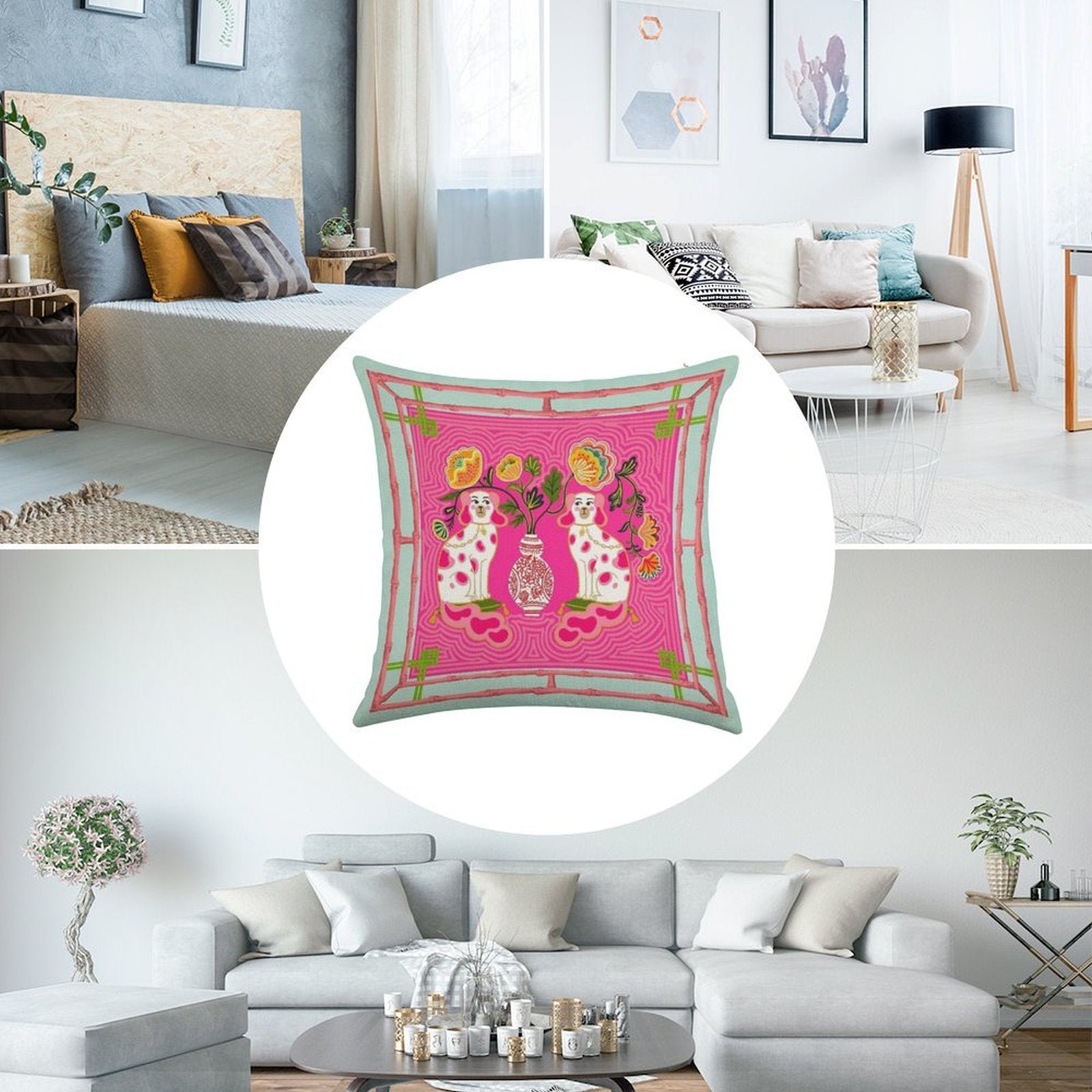 - Machine or hand washable (max 45°C). Avoid bleach and prolonged soaking to preserve the vibrant texture of your Chinoiserie Staffordshire Pink And Coral Luxury Pillow Cover.