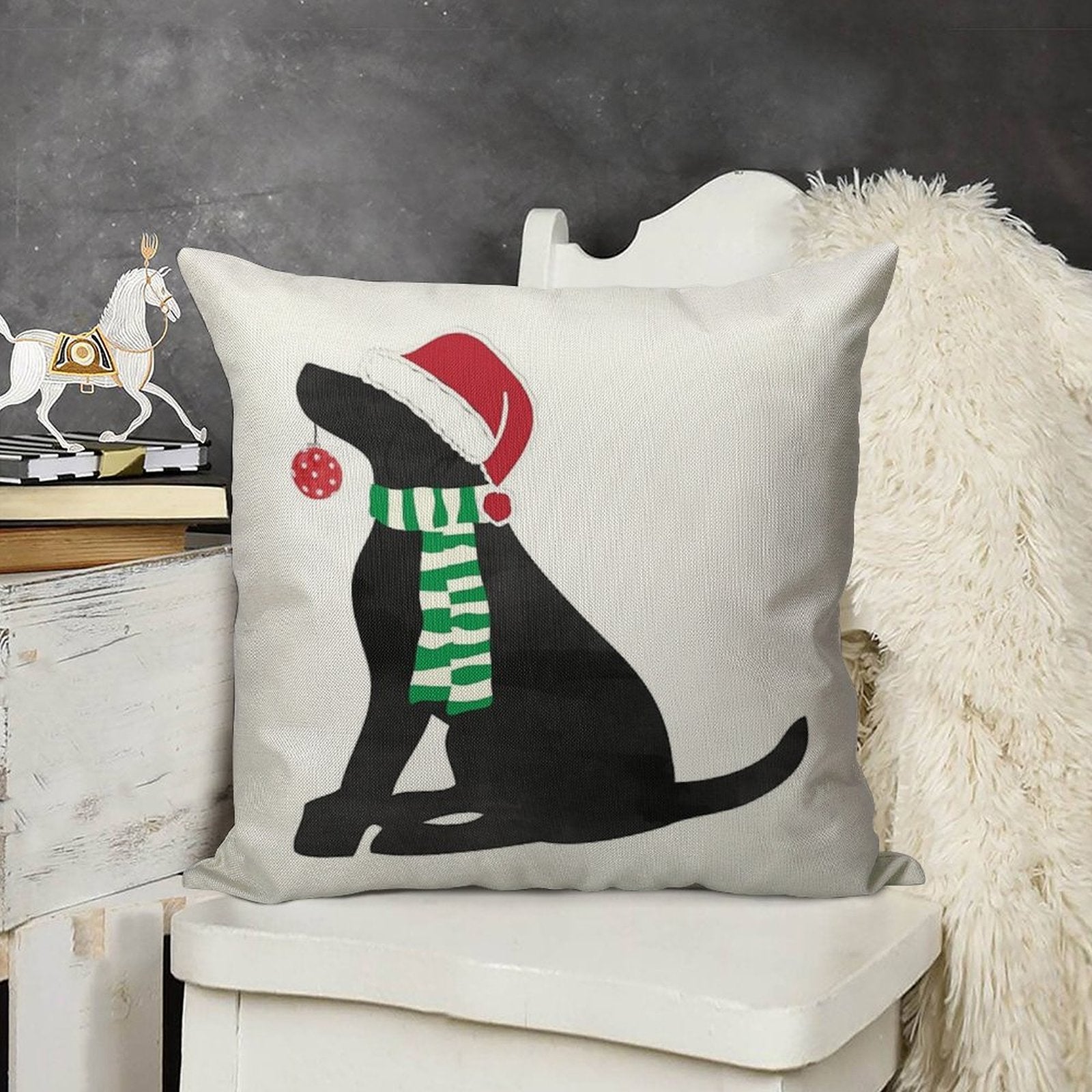 Christmas Black Lab Holiday Dog Linen Throw Pillow Cover