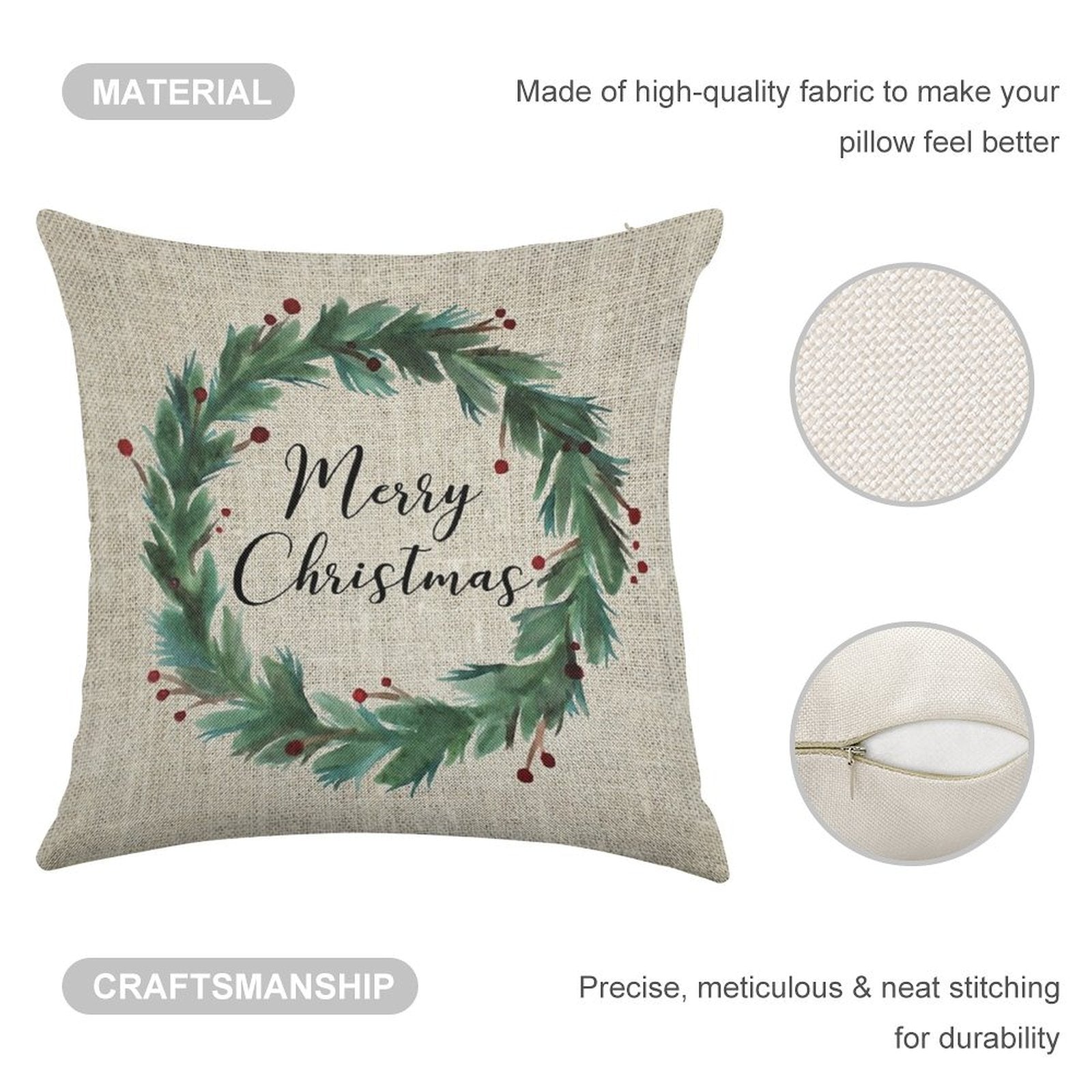 - Double-Stitched Edges: Precision stitching prevents fraying, stretching, and pilling, ensuring your Christmas Wreath Linen Throw Pillow Cover stays pristine through countless uses.