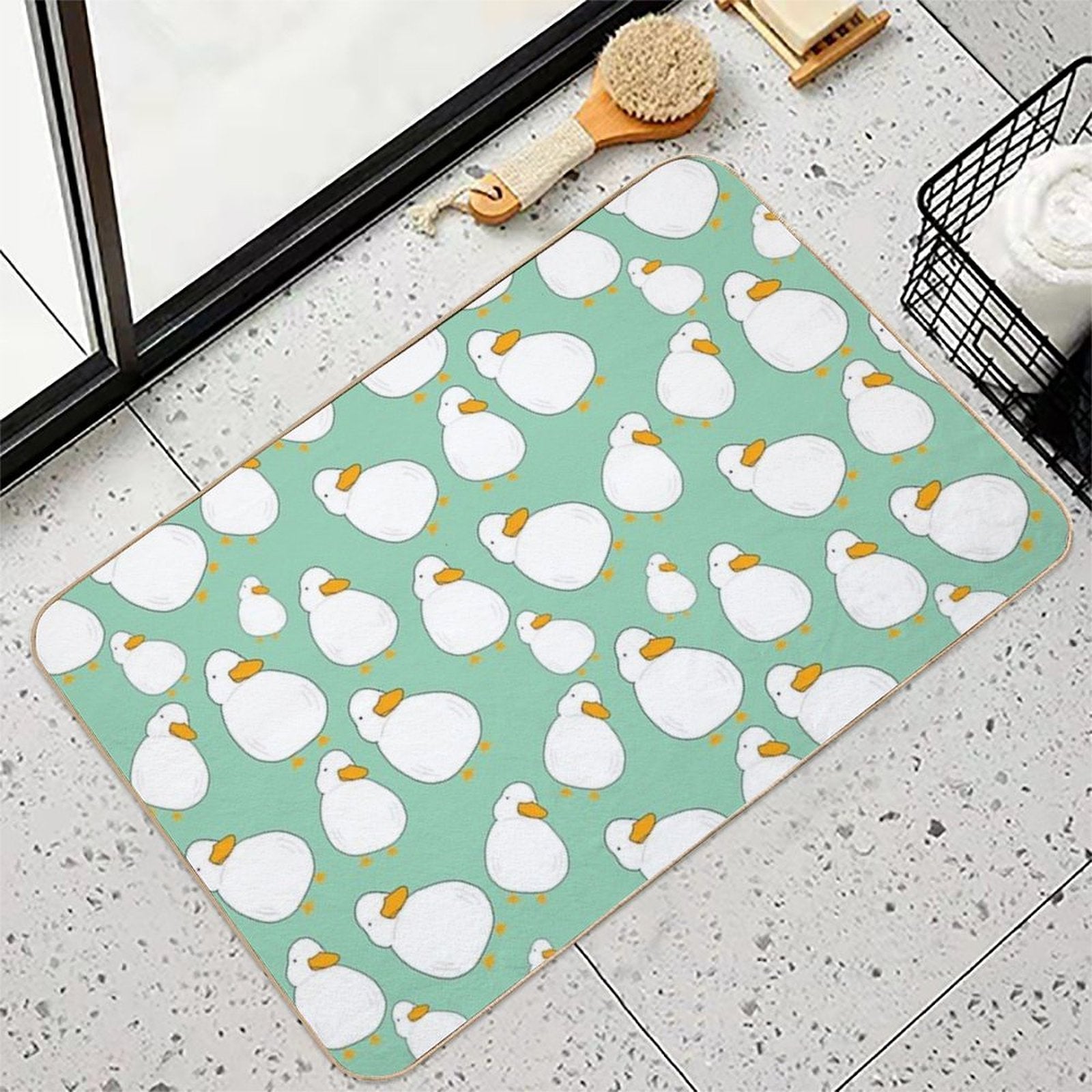 - Rapid-drying flannel soaks up water 3x faster than standard mats, preventing puddles in Chubby Duck Pattern Cute Fluffy White Bird Simple Anime Cartoon Kawaii Animal bathrooms or poolside areas.