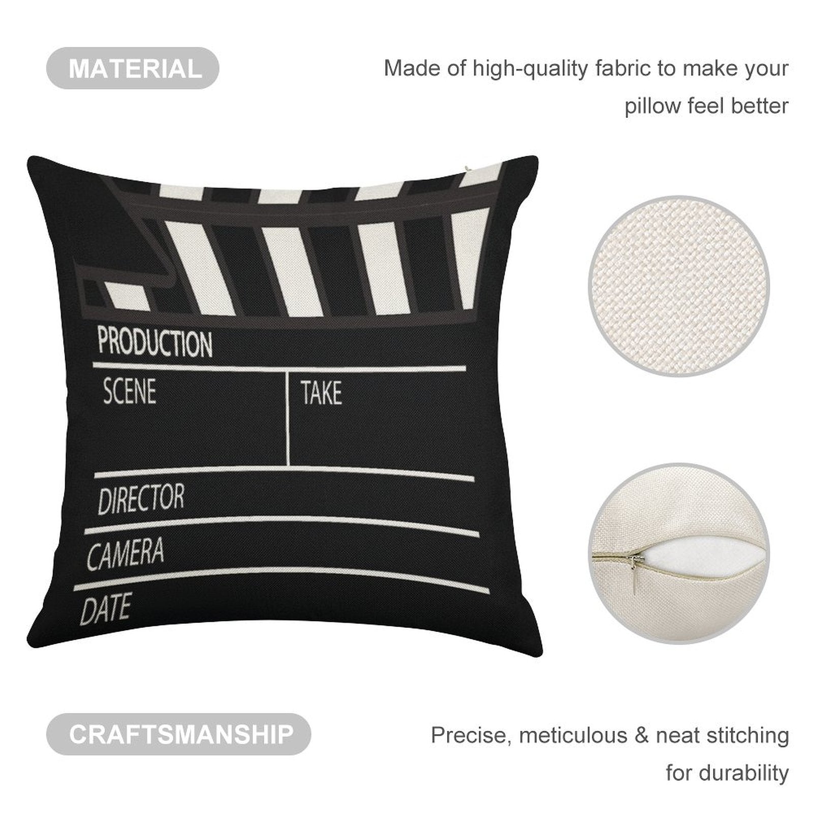 - Double-Stitched Edges: Precision stitching prevents fraying, stretching, and pilling, ensuring your Clapper Board Linen Throw Pillow Cover stays pristine through countless uses.