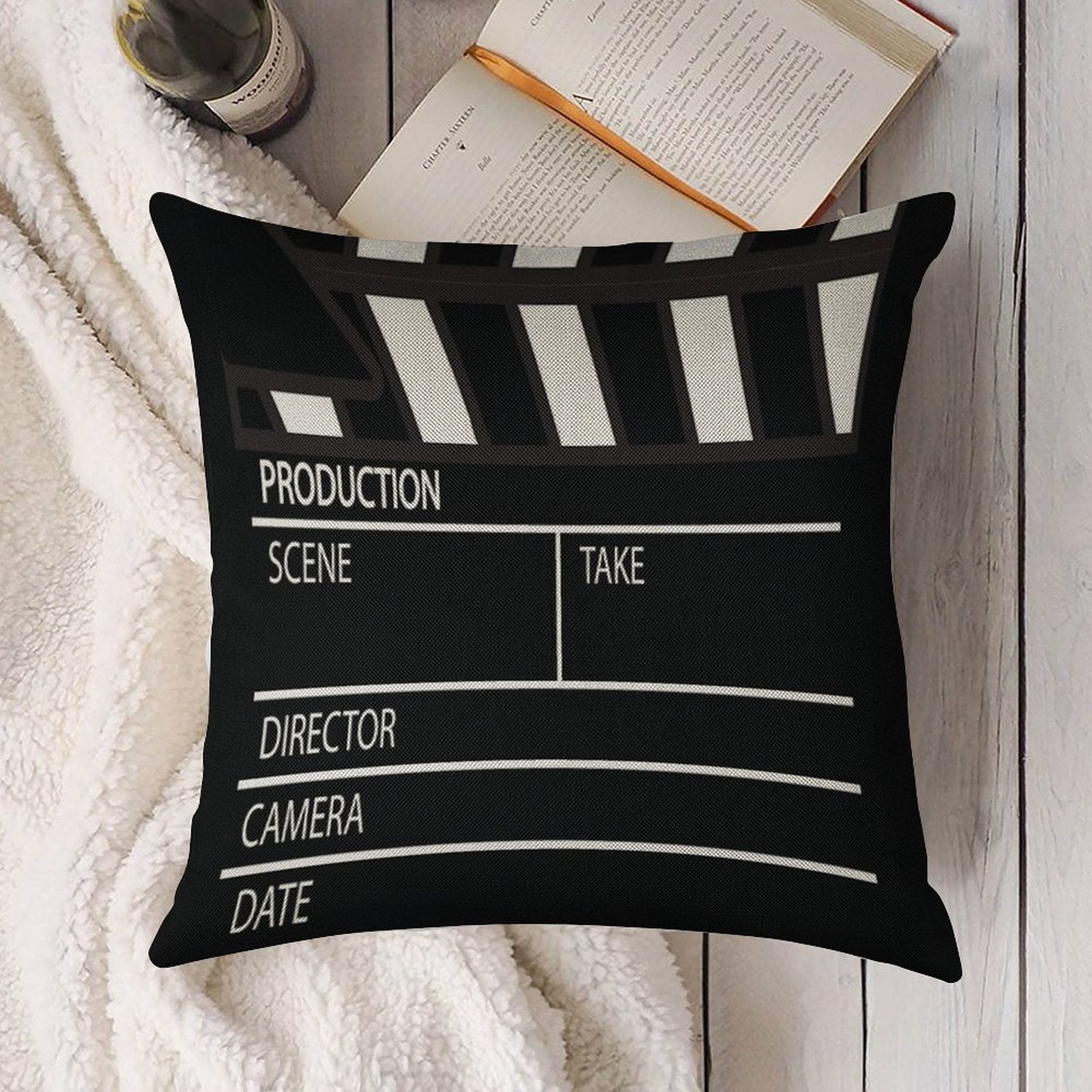 - Machine or hand washable (max 45°C). Avoid bleach and prolonged soaking to preserve the vibrant texture of your Clapper Board Luxury Pillow Cover.