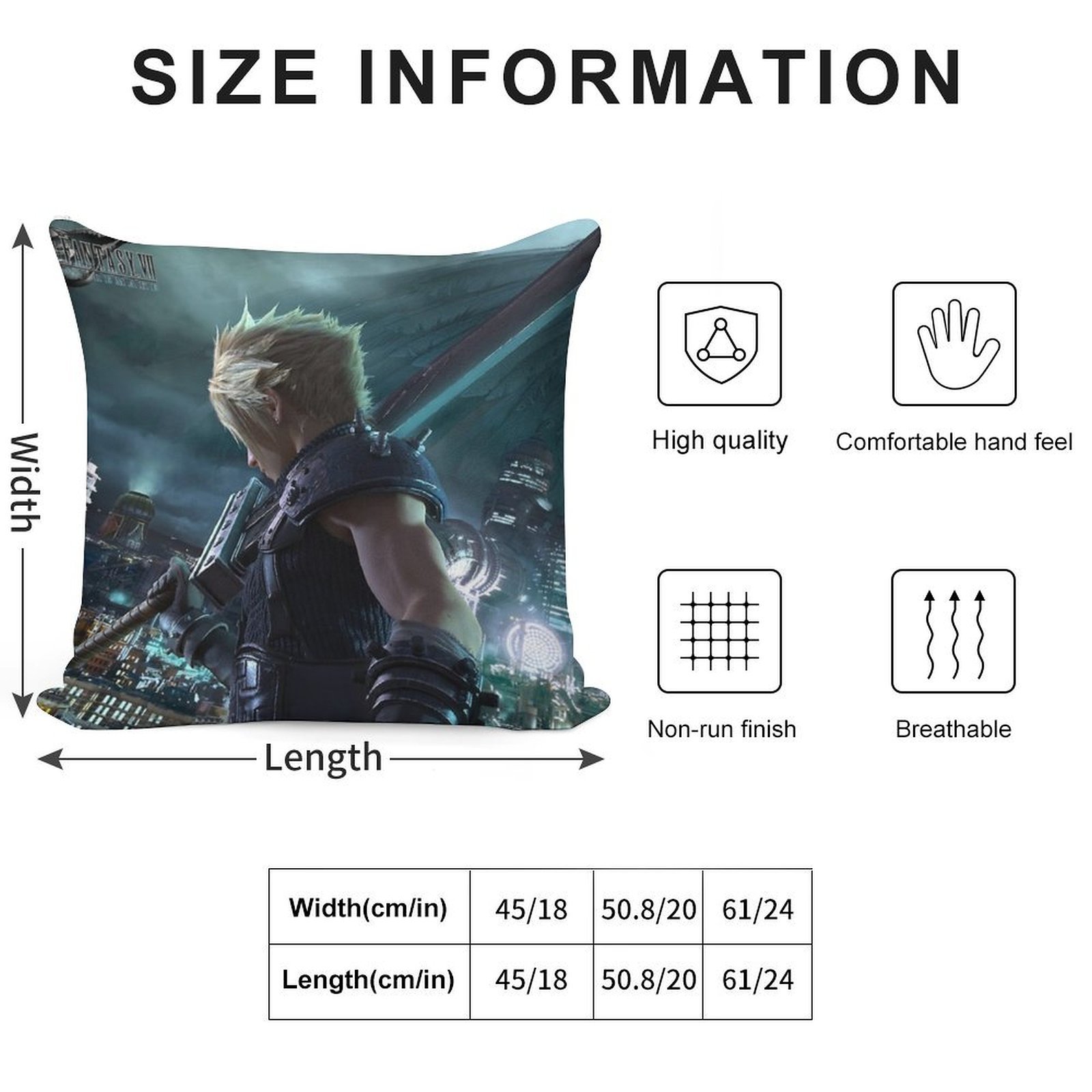 - Reinforced stitching along the edges prevents fraying and extends the life of your Cloud Final Fantasy VII Remake Pillowcase.
