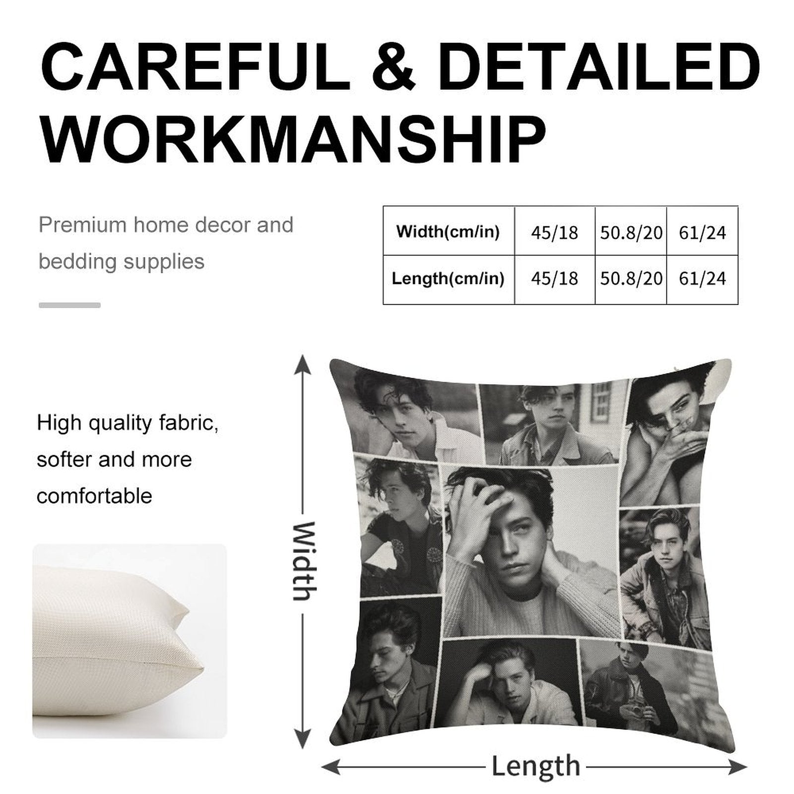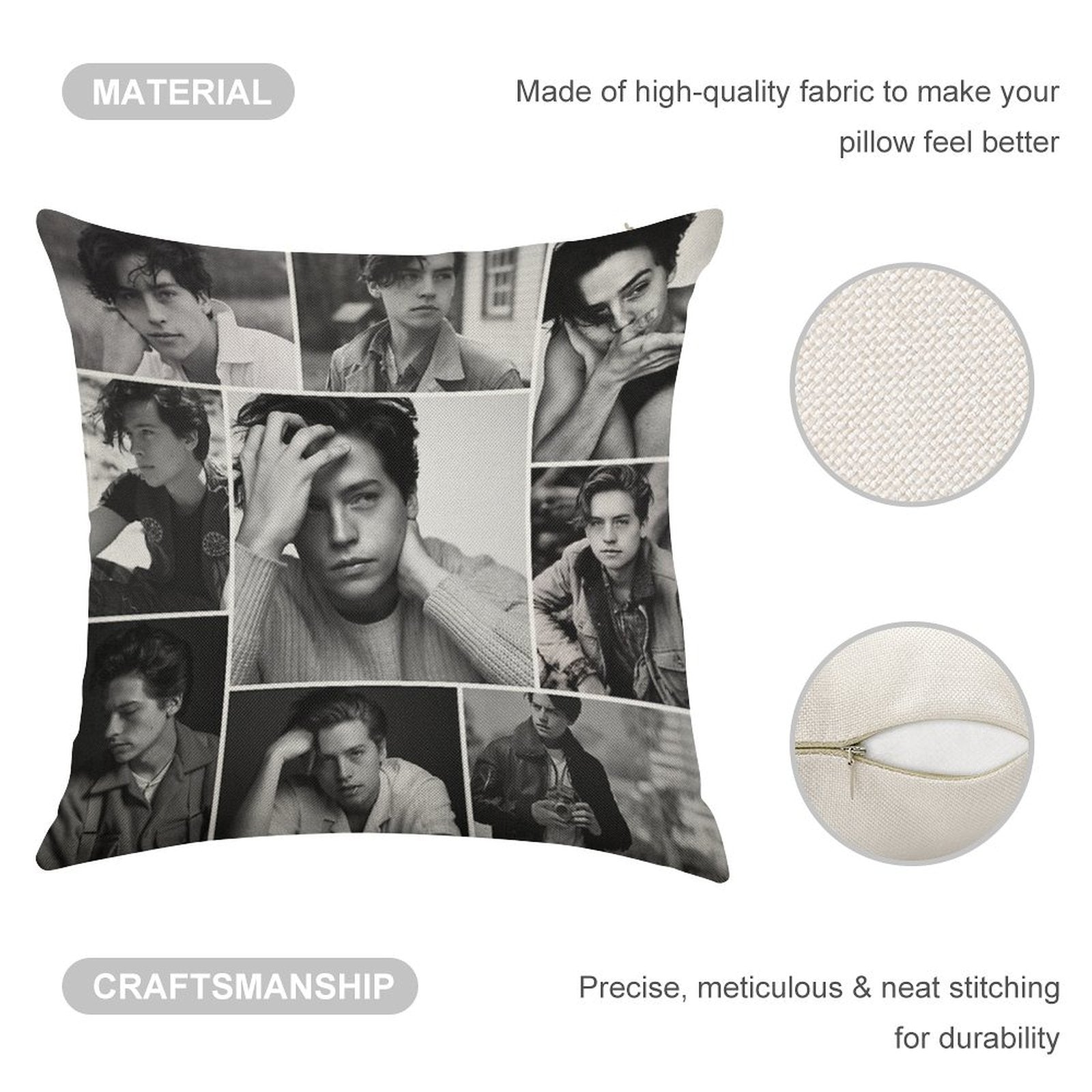 - Machine or hand washable (max 45°C). Avoid bleach and prolonged soaking to preserve the vibrant texture of your Cole Sprouse Black And White Luxury Pillow Cover.