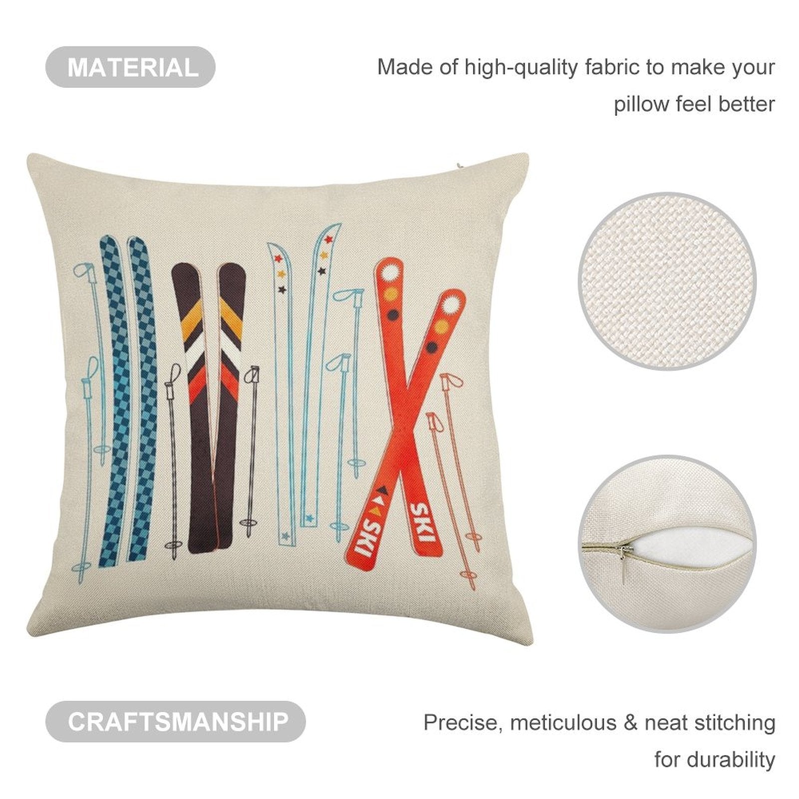 - Double-Stitched Edges: Precision stitching prevents fraying, stretching, and pilling, ensuring your Colorful Retro Ski Illustration Linen Throw Pillow Cover stays pristine through countless uses.