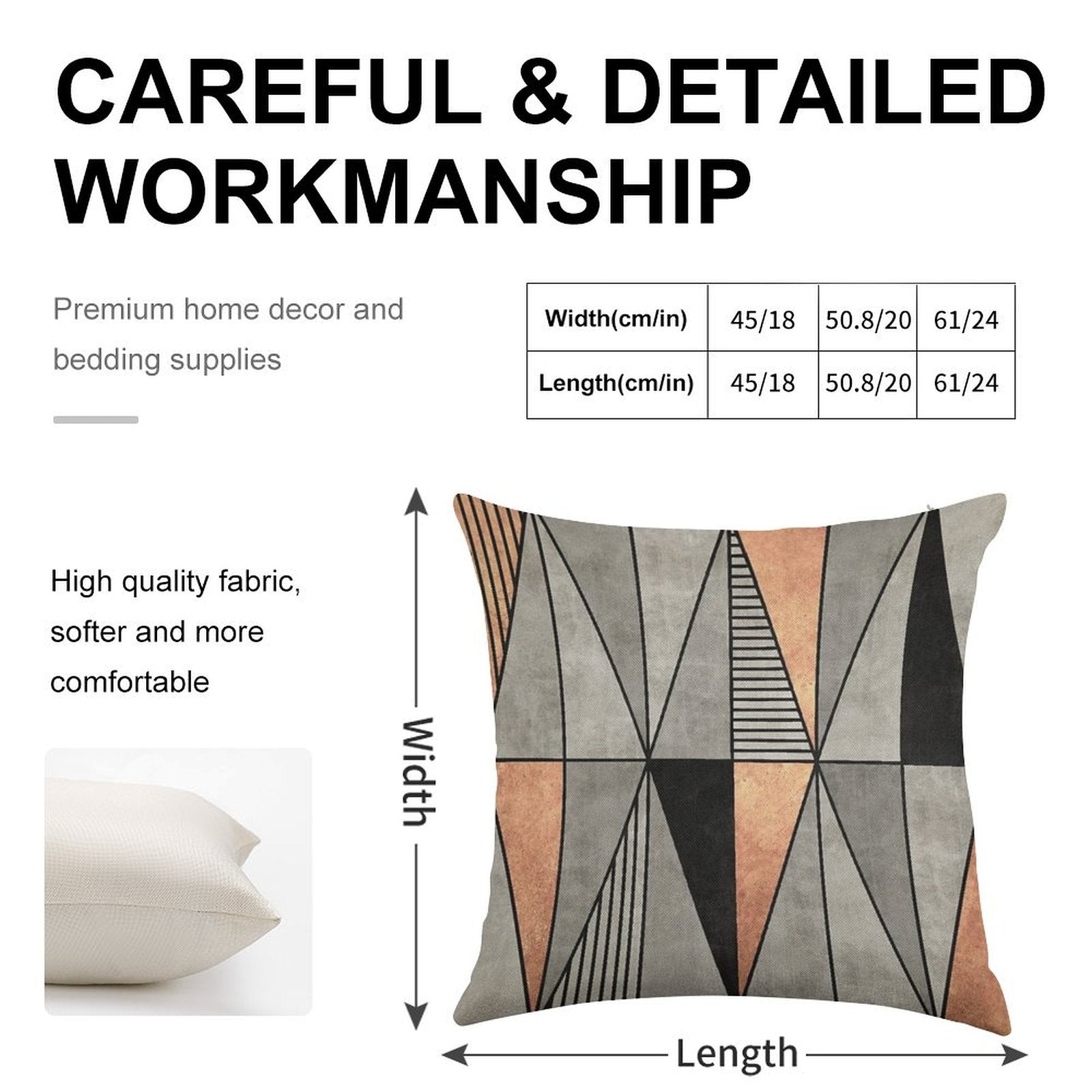 - Double-Stitched Edges: Precision stitching prevents fraying, stretching, and pilling, ensuring your Concrete And Copper Triangles Linen Throw Pillow Cover stays pristine through countless uses.
