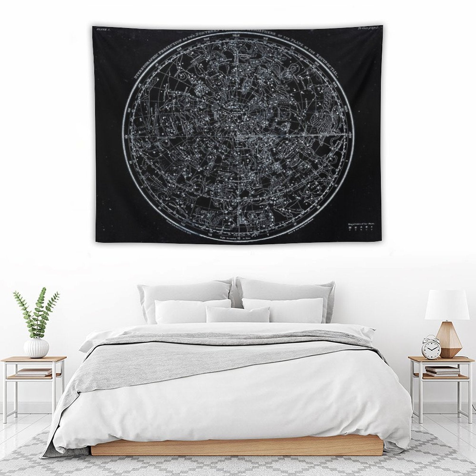 💓【MULTI-FUNCTION】 Used "Constellations of The Northern Hemisphere Pale Blue On Black Tapestry" to decorate your bedroom, college dorm, room, living room, kitchen wall, can be used as tapestry or wall hanging, bedspread, tablecloth, dormitory decoration, beach shawl, tablecloth, etc.