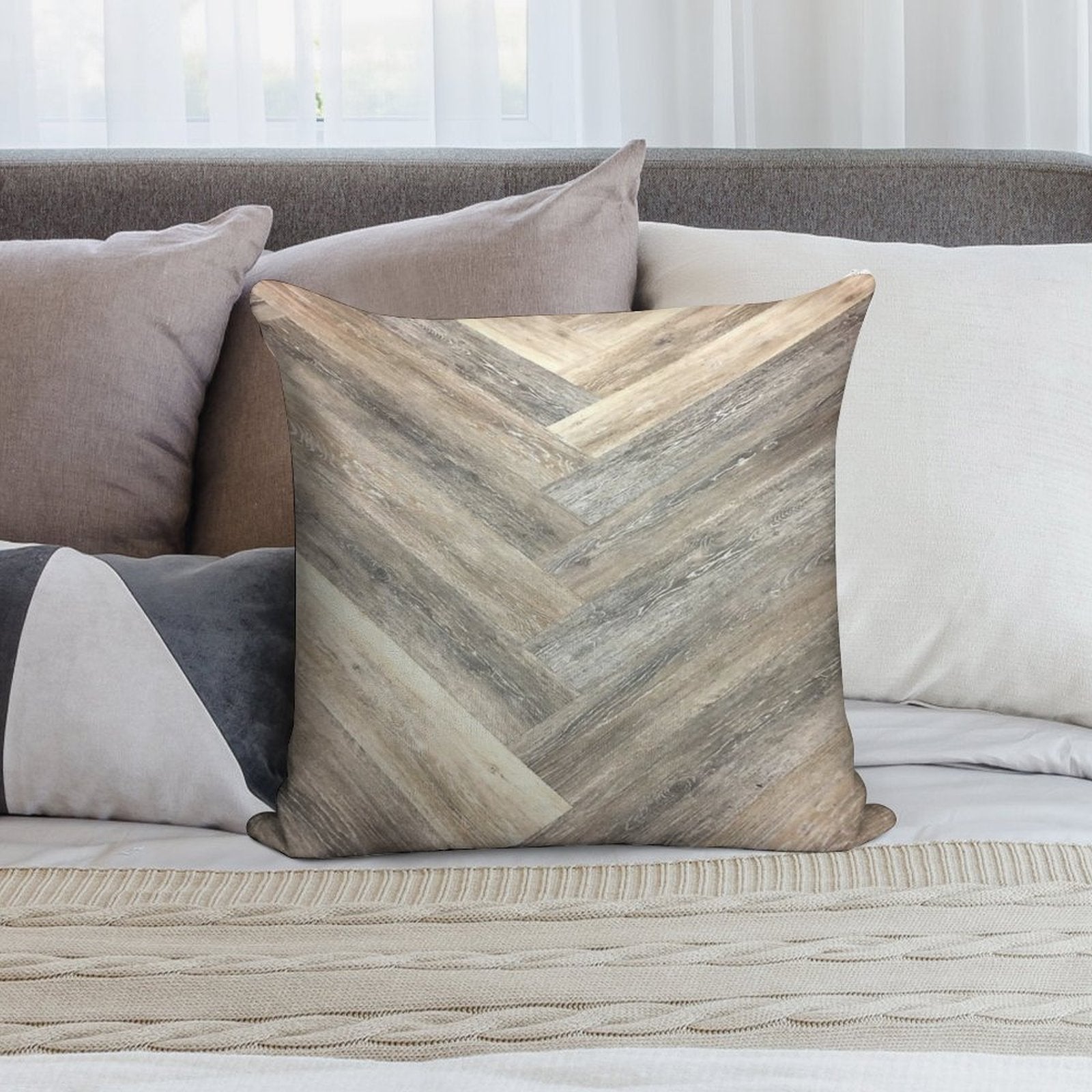 Contemporary Caramel Brown Grey Beige Farmhouse Barn Wood Soft Reinforced Edging Throw Pillow