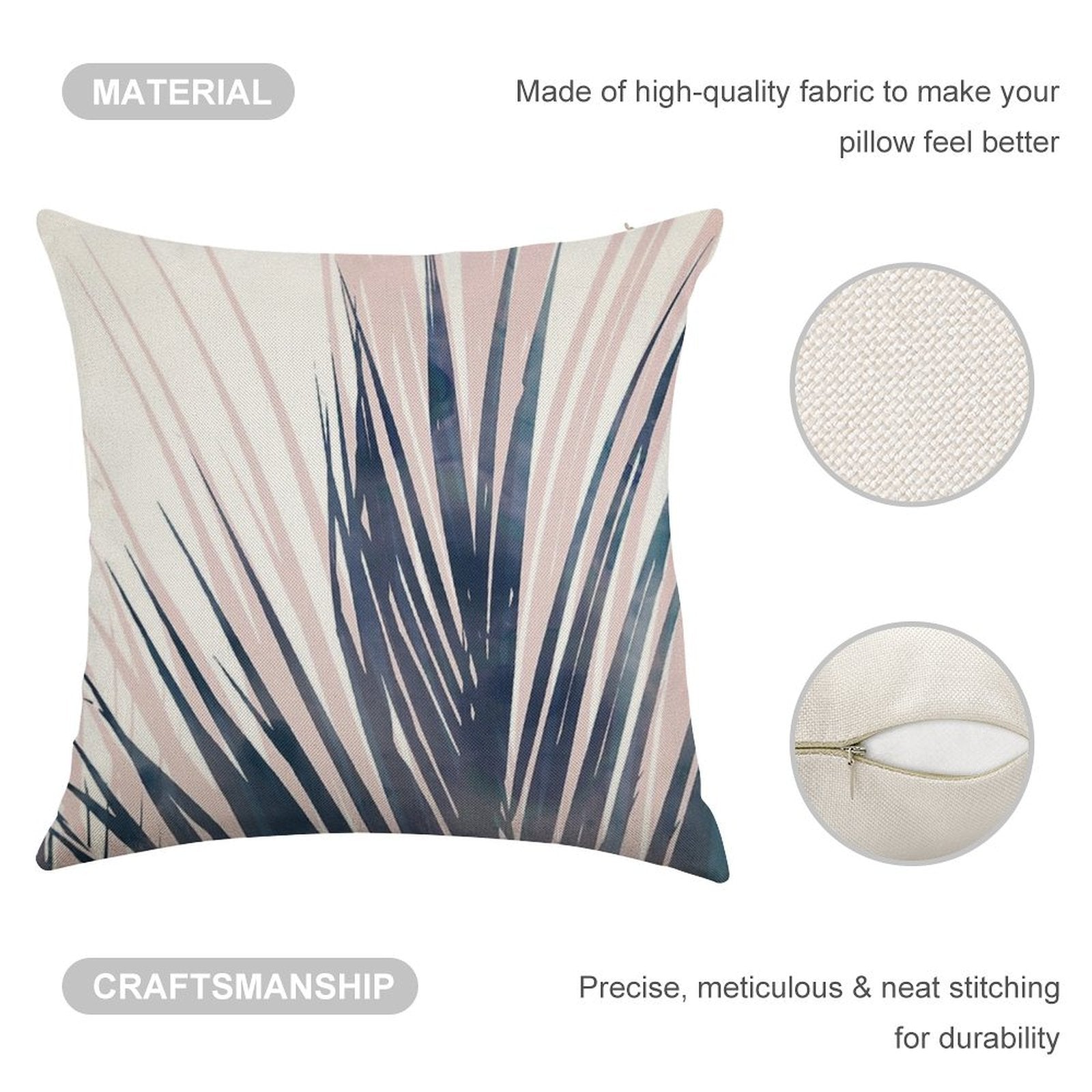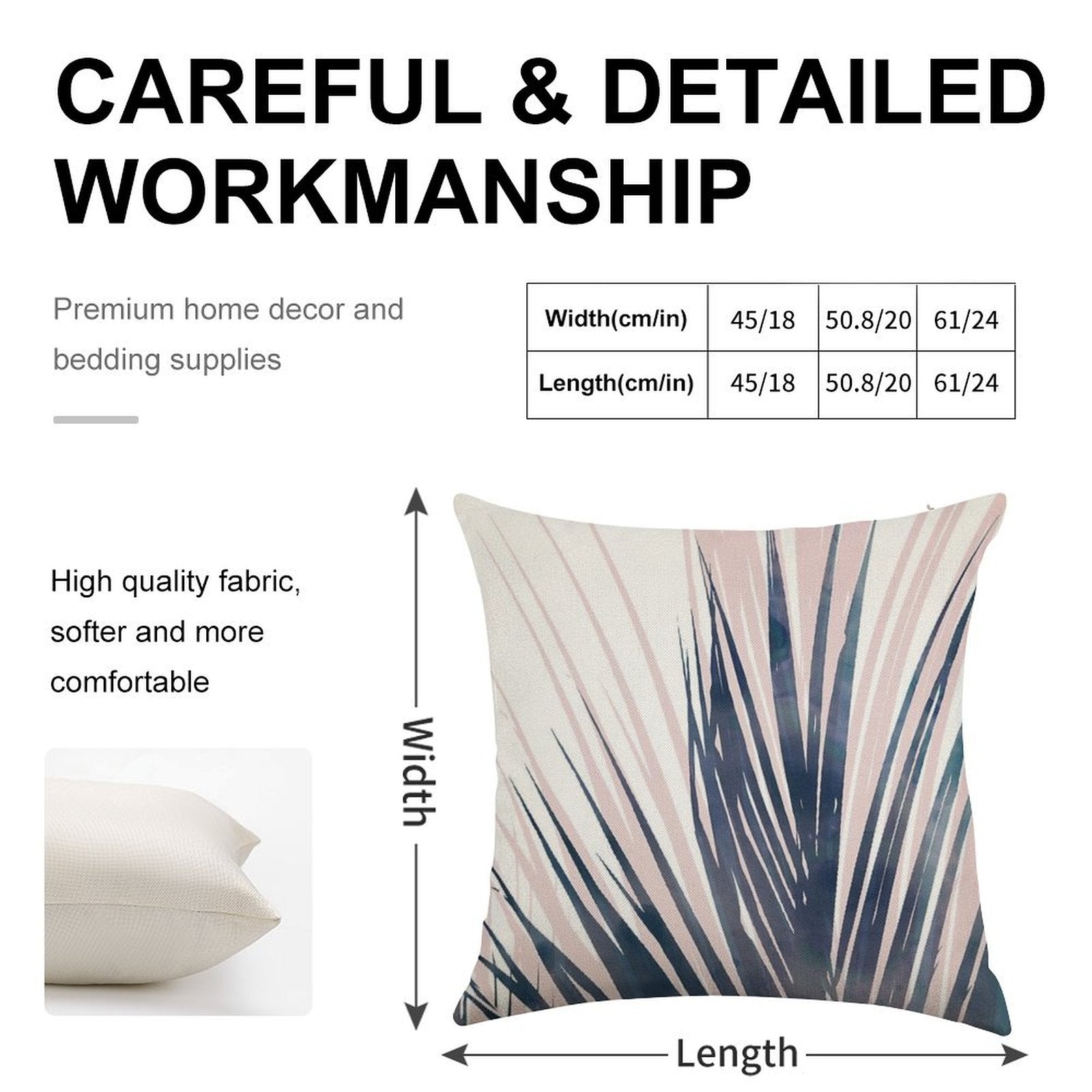 - Double-Stitched Edges: Precision stitching prevents fraying, stretching, and pilling, ensuring your Contemporary Palm Leaf in Navy Blue And Blush Pink Linen Throw Pillow Cover stays pristine through countless uses.