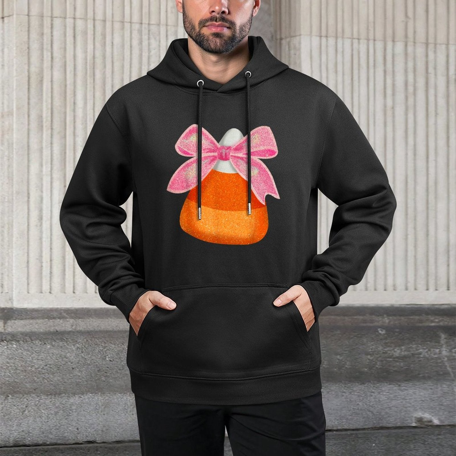 Coquette Bow Candy Corn Women Girls Kids Halloween Costume Kangaroo Pocket Hoodie