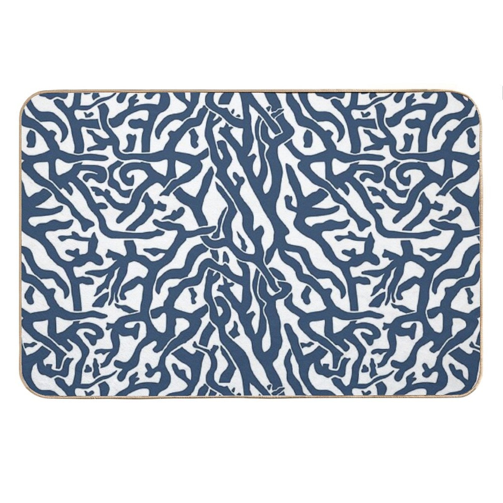 Coral Reef Pattern Navy Blue White Coastal Beach House Bath Mat