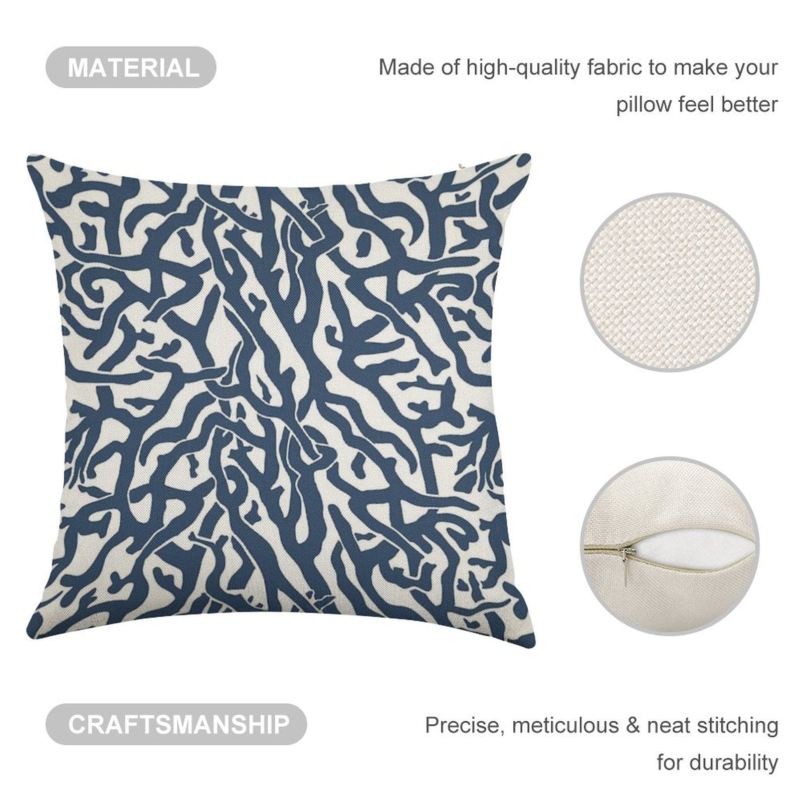 - Double-Stitched Edges: Precision stitching prevents fraying, stretching, and pilling, ensuring your Coral Reef Pattern Navy Blue White Coastal Beach House Linen Throw Pillow Cover stays pristine through countless uses.