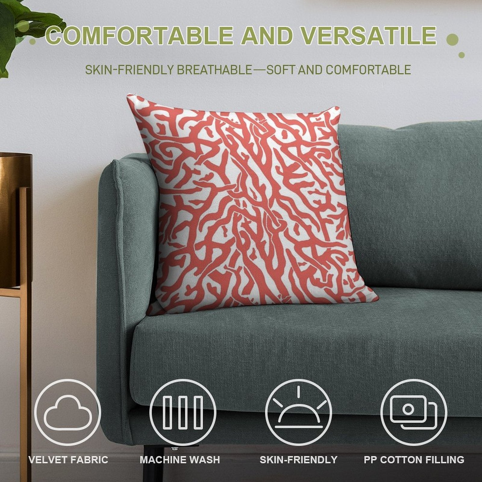 Coral Reef Pattern Reddish Coral White Coastal Beach House Soft Washable Throw Pillow