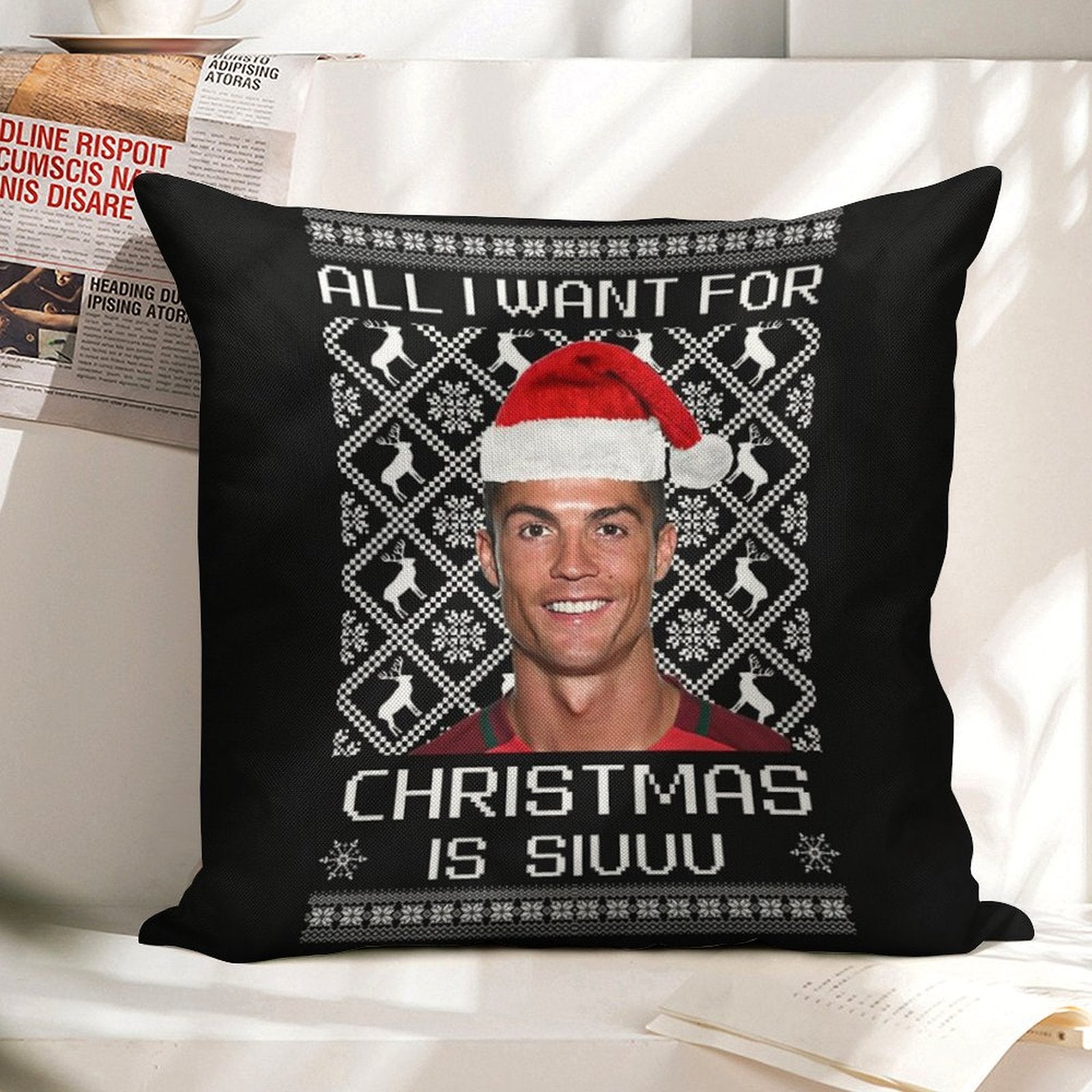 Upgrade your living space with our Cristiano Ronaldo Siuuu Christmas Sweater Linen Throw Pillow Cover, blending timeless elegance and modern functionality. Crafted from breathable, durable linen-cotton fabric, this Cristiano Ronaldo Siuuu Christmas Sweater Customizable Home Decor Gift features reinforced edges and a hidden zipper for a flawless finish. Perfect for bedrooms, RVs, or vacation homes, our Cristiano Ronaldo Siuuu Christmas Sweater Luxury Pillow Cover offers versatility and style, making it ideal for everyday use or heartfelt gifting.
