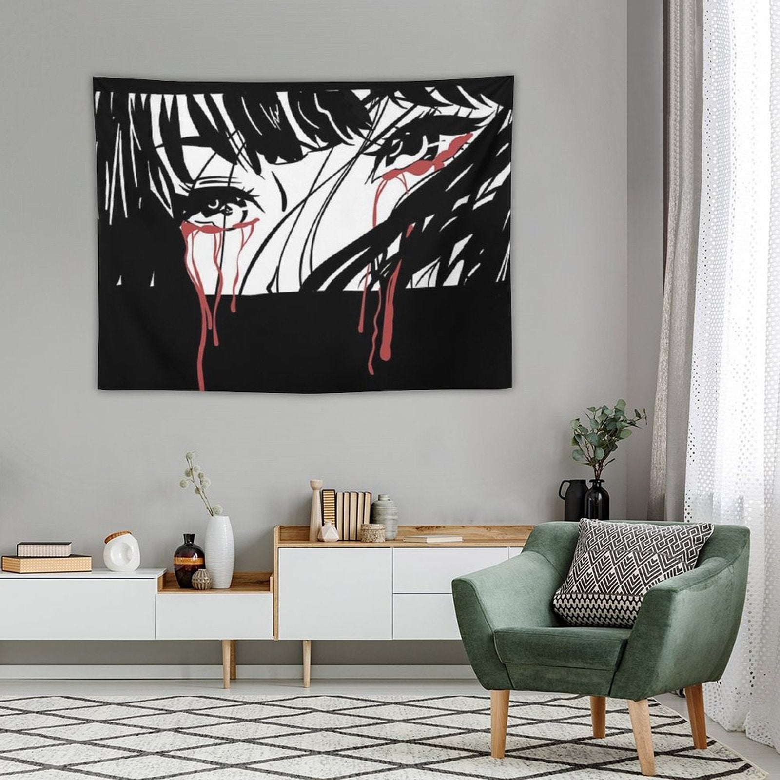 💓【MULTI-FUNCTION】 Used "Crying Girl Tapestry" to decorate your bedroom, college dorm, room, living room, kitchen wall, can be used as tapestry or wall hanging, bedspread, tablecloth, dormitory decoration, beach shawl, tablecloth, etc.