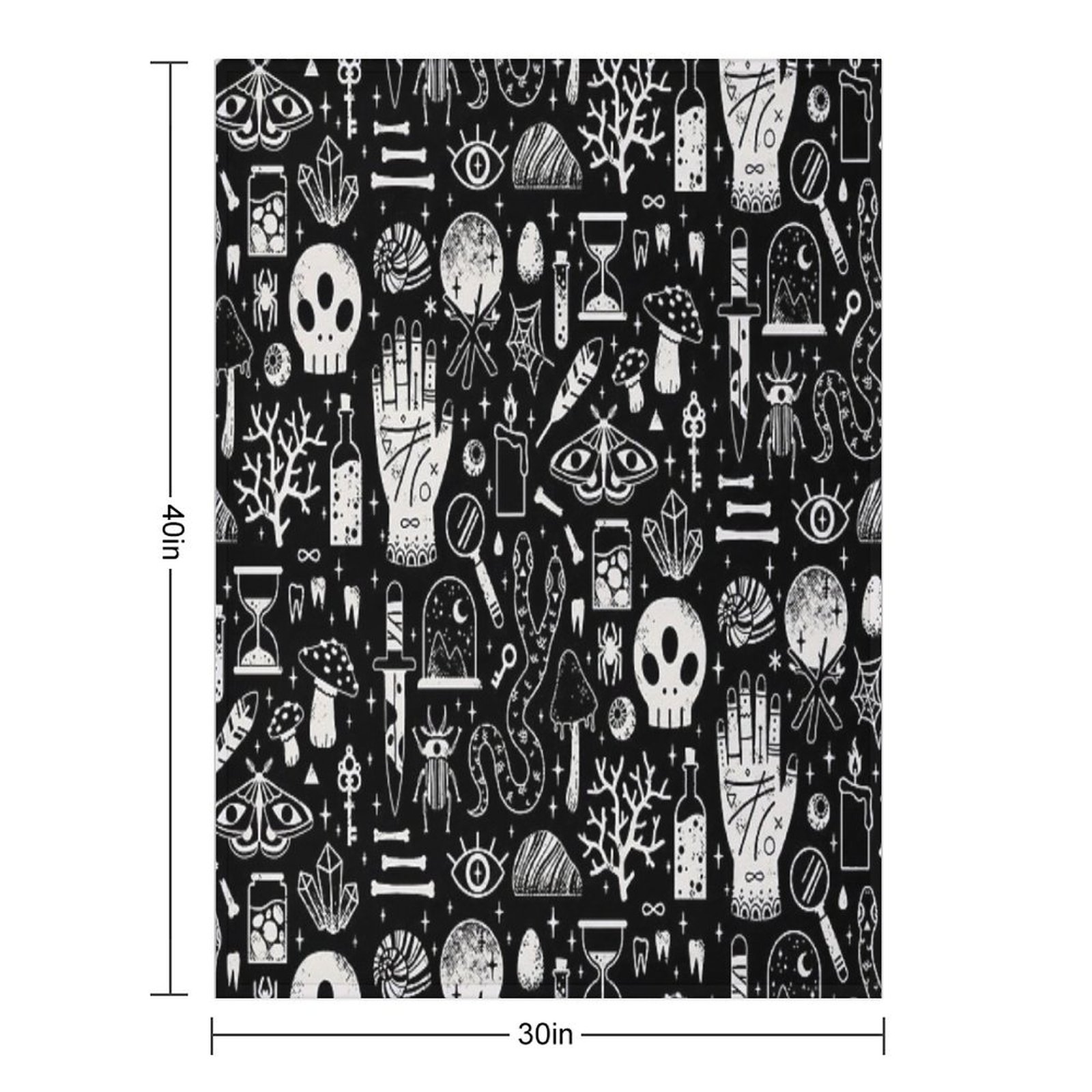 Curiosities Bone Black Blanket Size Chart: