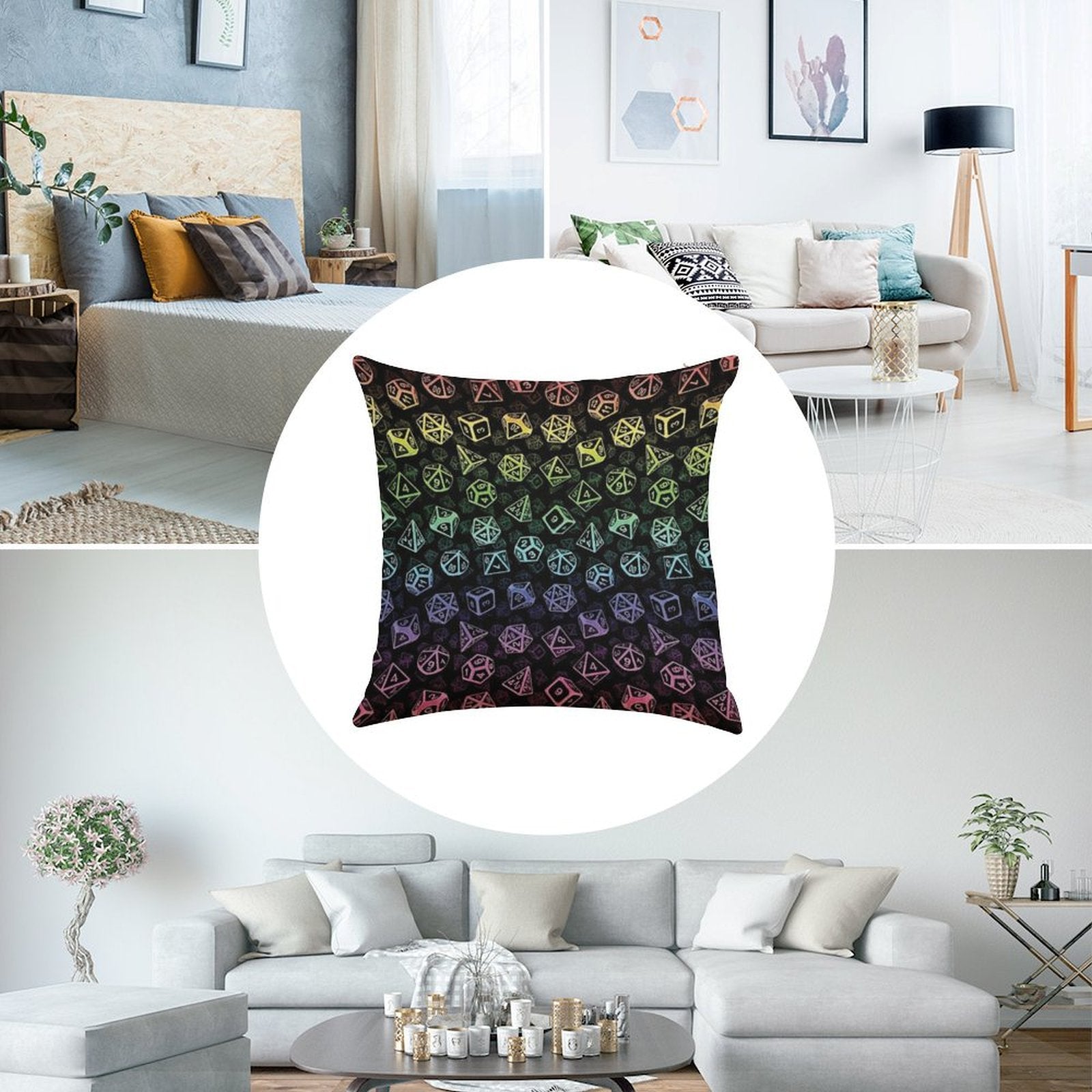 - Machine or hand washable (max 45°C). Avoid bleach and prolonged soaking to preserve the vibrant texture of your D20 Dice Set Pattern (Rainbow) Luxury Pillow Cover.