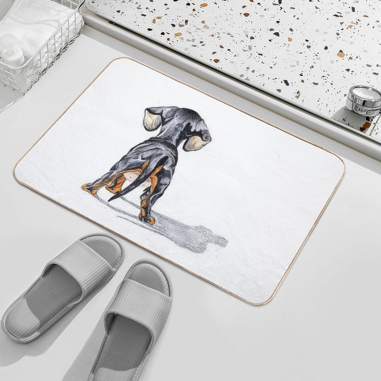 - Non-slip rubber backing grips floors securely, ideal for Dachshund Dog Pupy Back Mat placements on tiles, wood, or marble.