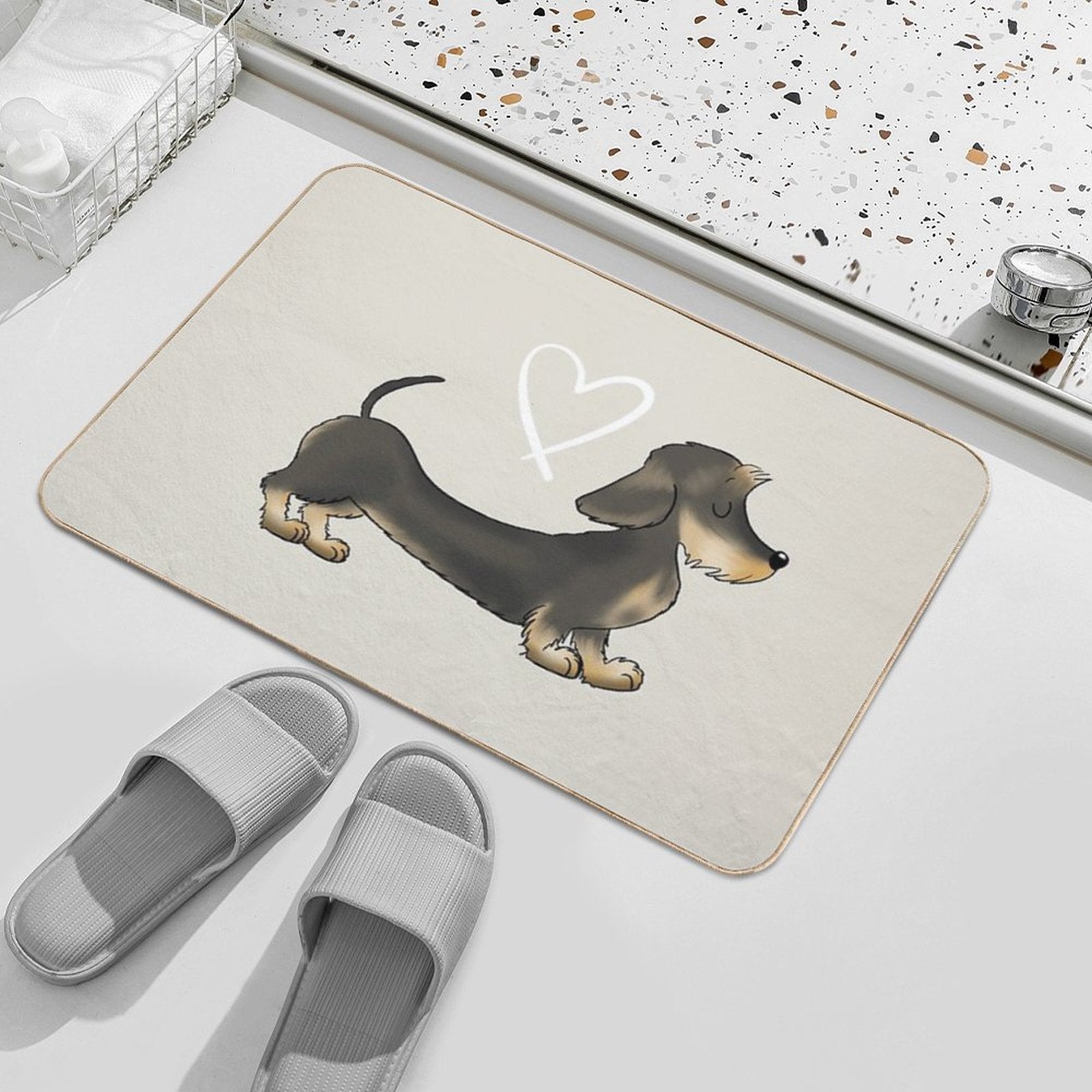 - Non-slip rubber backing grips floors securely, ideal for Dachshund Wire Hair Sausage Dog Mat placements on tiles, wood, or marble.