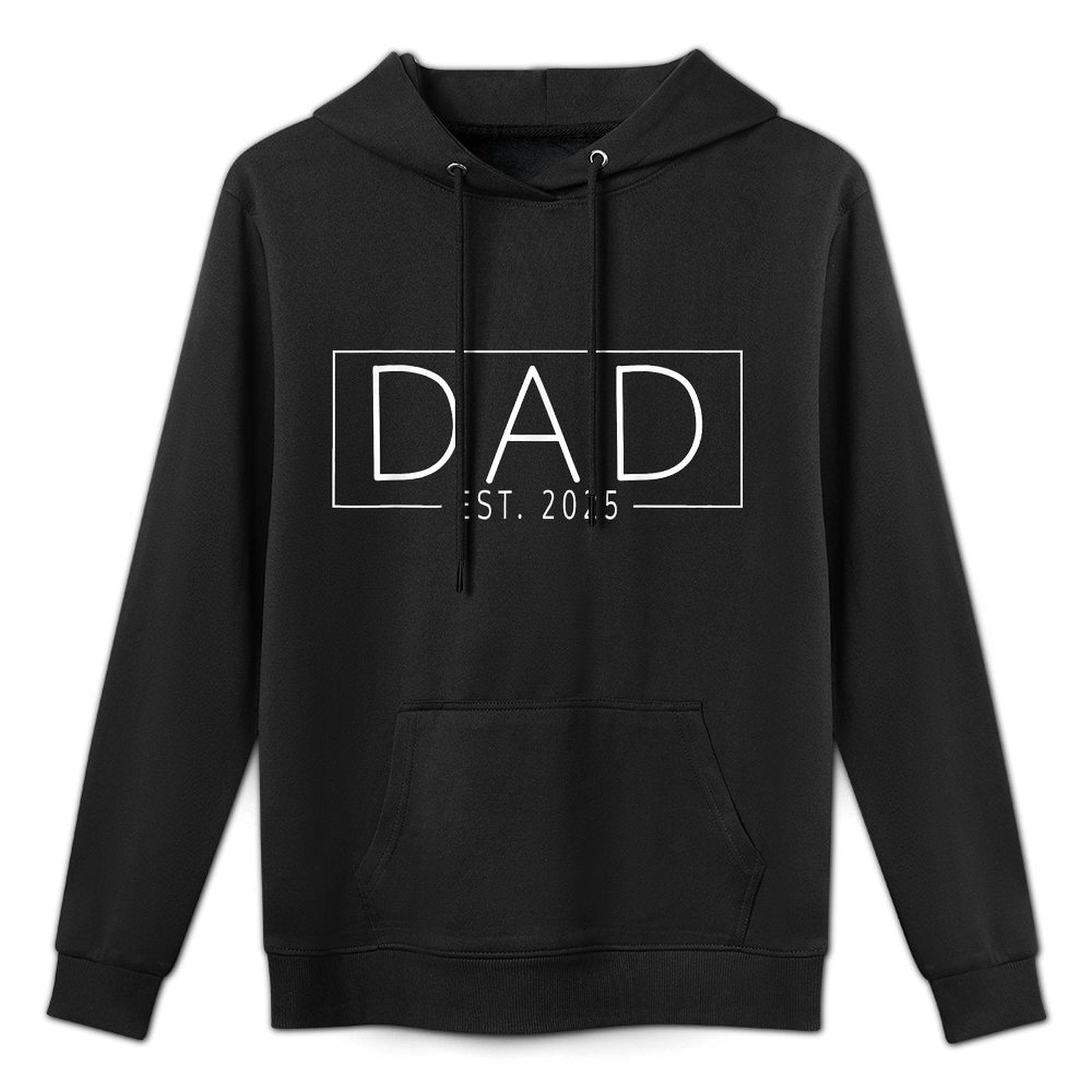Dad Est. 2025 Expect Baby 2025, Father 2025 New Dad 2025, Small, Black Adjustable Hood Hoodie