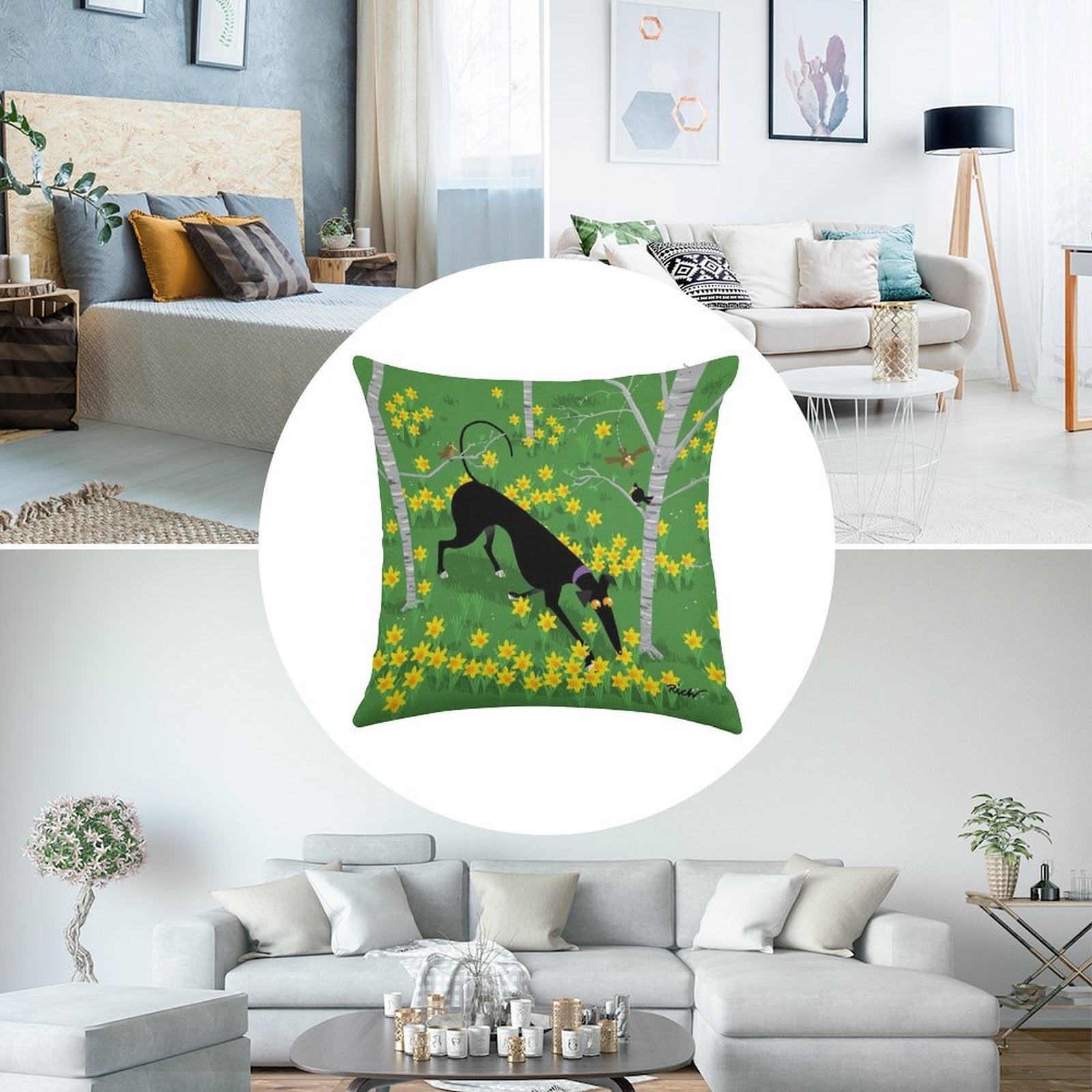 - Machine or hand washable (max 45°C). Avoid bleach and prolonged soaking to preserve the vibrant texture of your Daffodil Hound Luxury Pillow Cover.