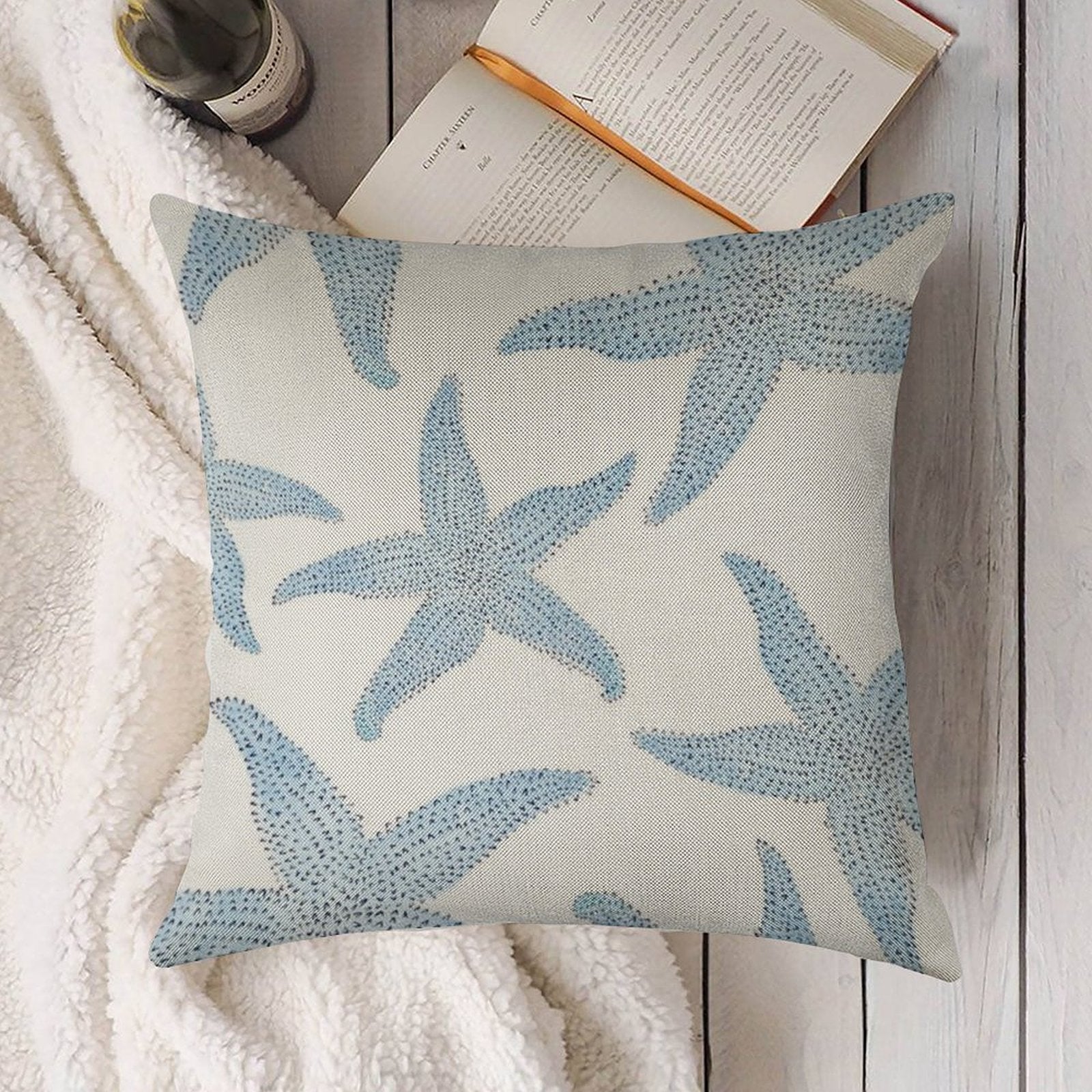 Dancing Blue Starfish Linen Throw Pillow Cover