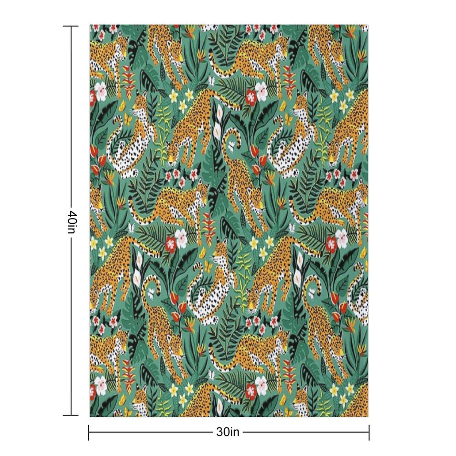 Dancing Jaguar Jungle - Green Blanket Size Chart: