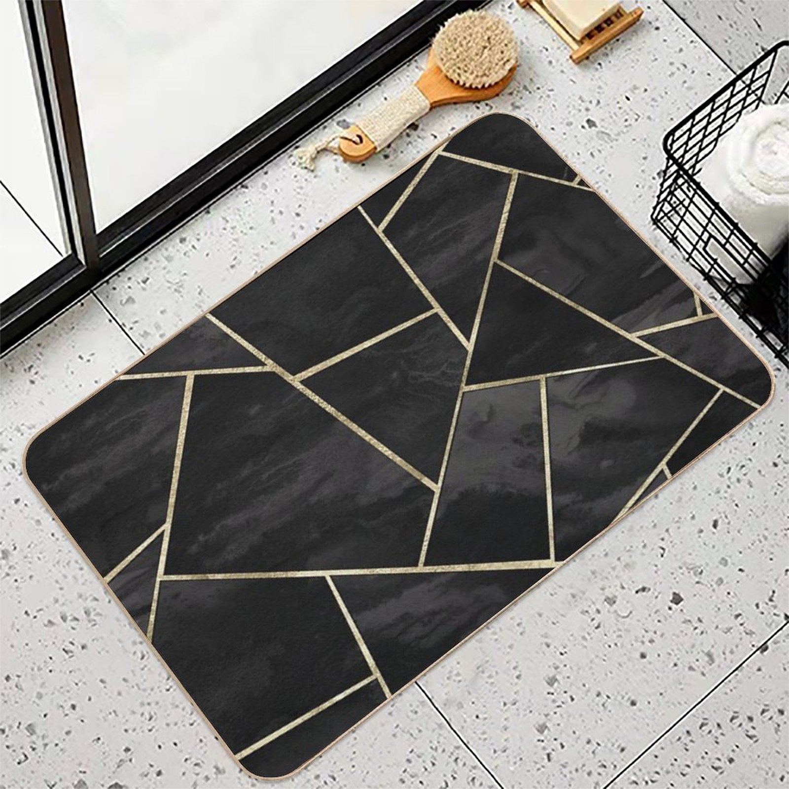 - Rapid-drying flannel soaks up water 3x faster than standard mats, preventing puddles in Dark Black Ink Gold Geometric Glam #1 #geo #decor #art bathrooms or poolside areas.