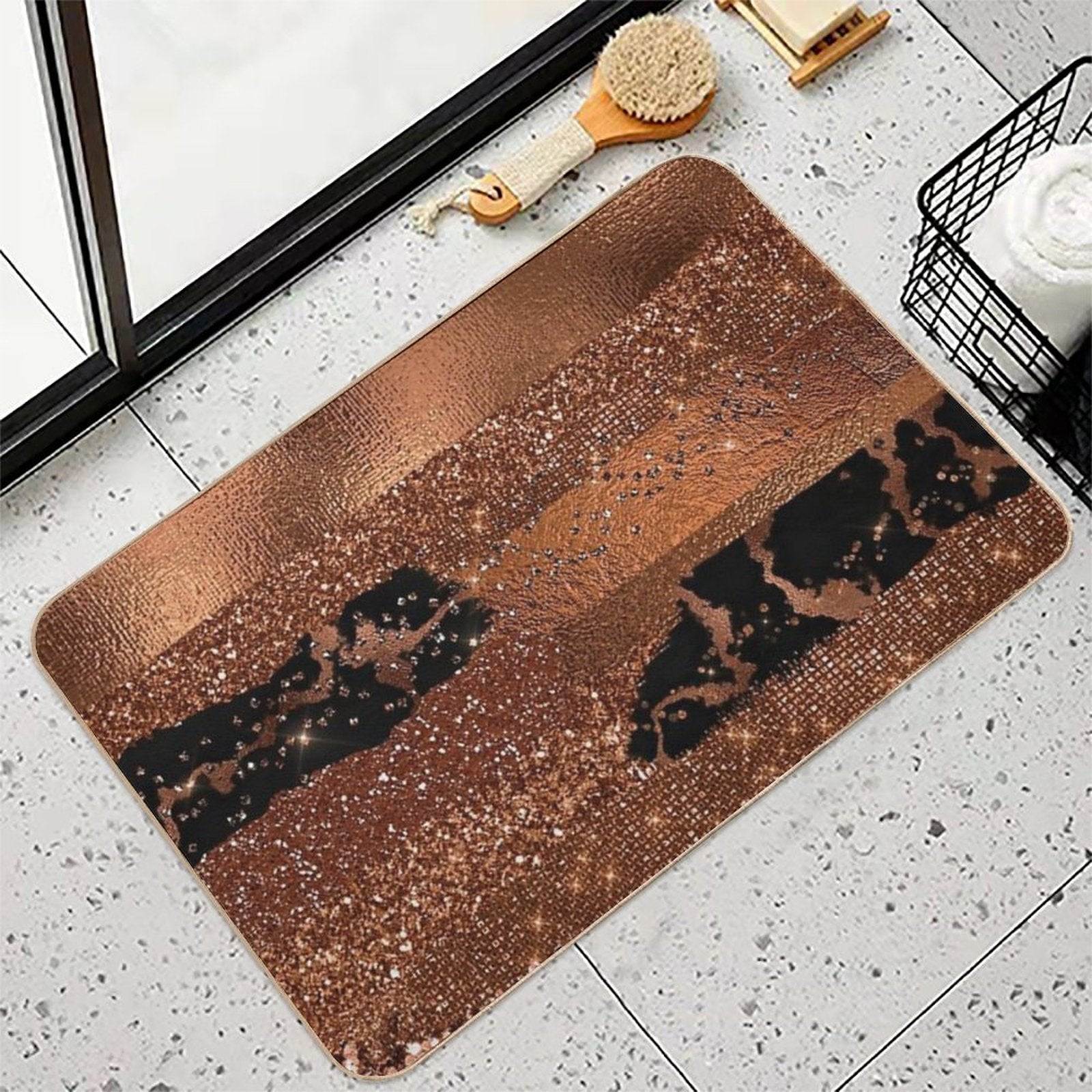 - Non-slip rubber backing grips floors securely, ideal for Dark Faux Copper Glamour Mat placements on tiles, wood, or marble.